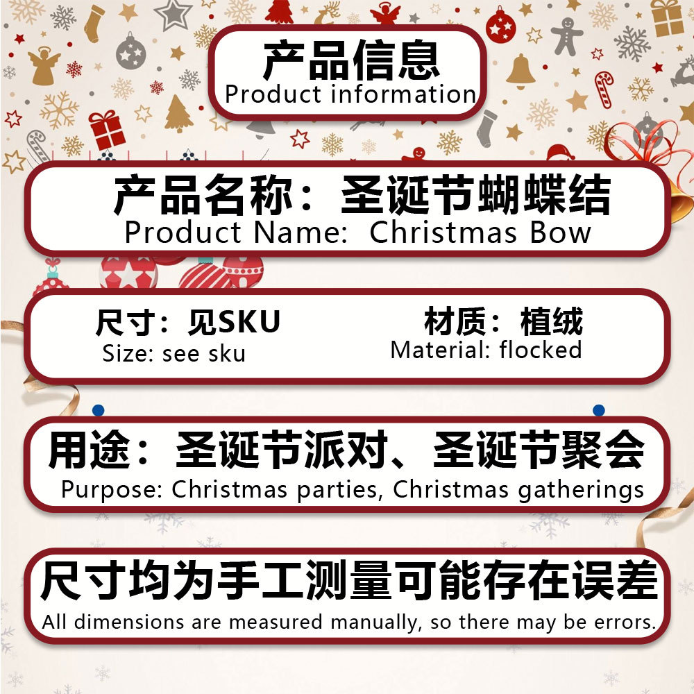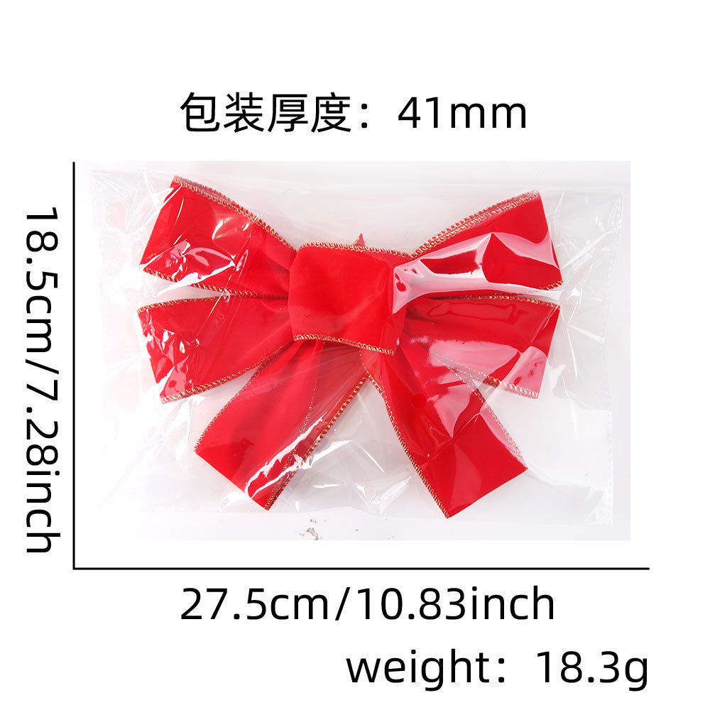 圣诞蝴蝶结红色植绒布蝴蝶结配饰挂件圣诞节派对装饰手打结挂饰
