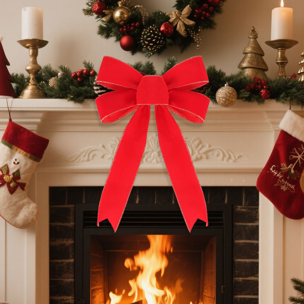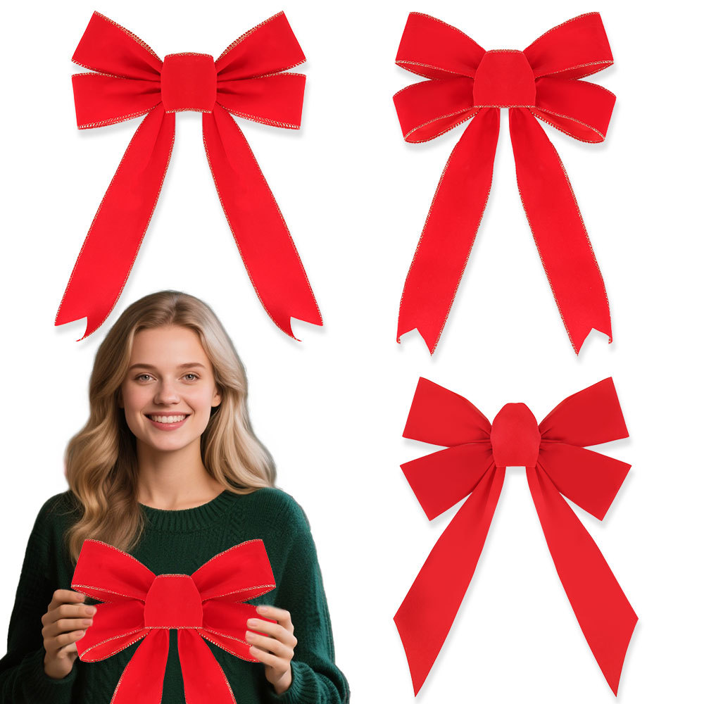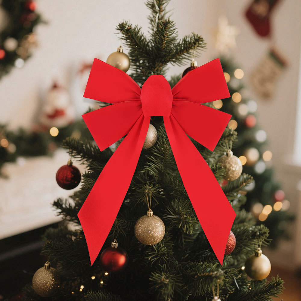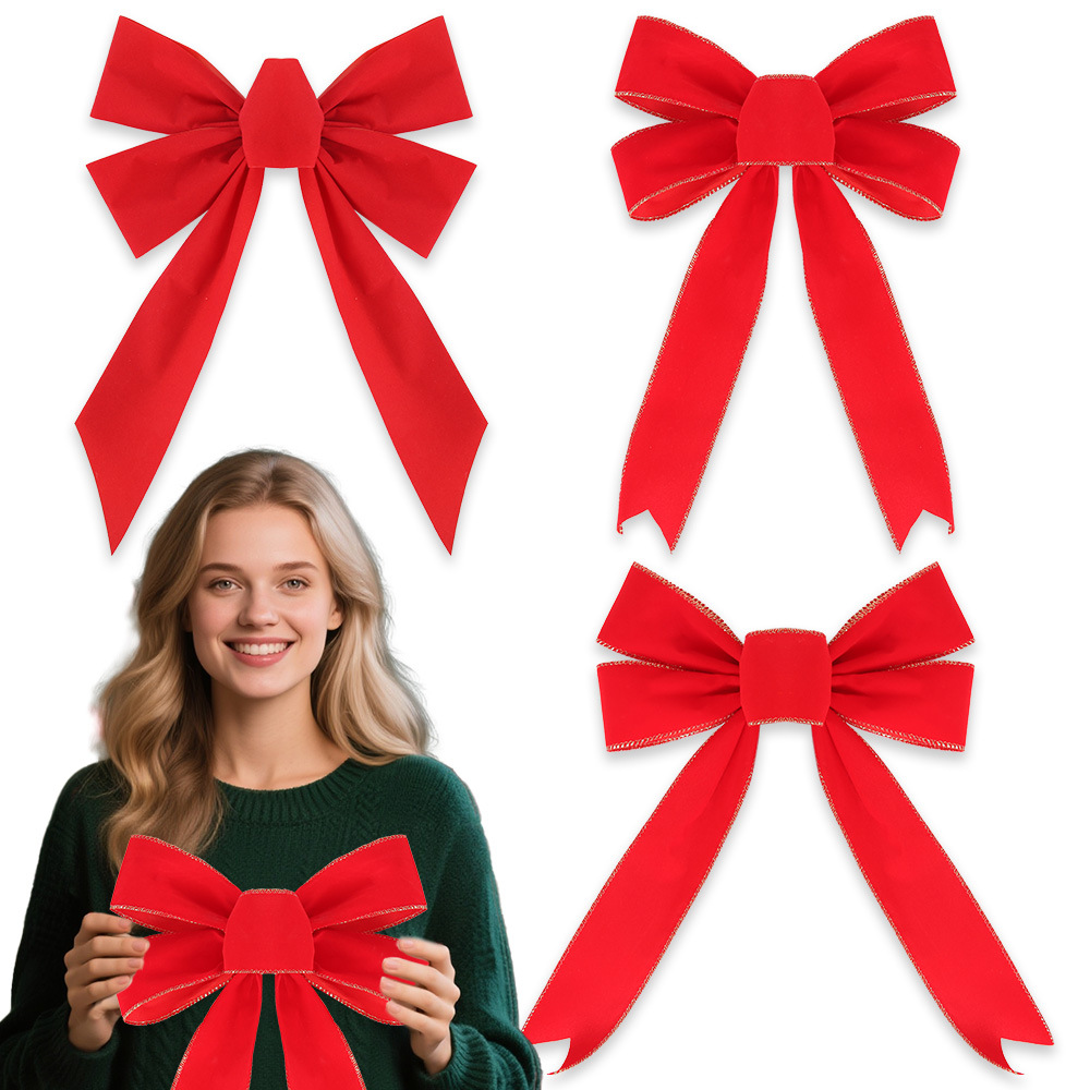 圣诞节装饰品蝴蝶结圣诞派对家居装扮道具手工DIY绒布大红蝴蝶结