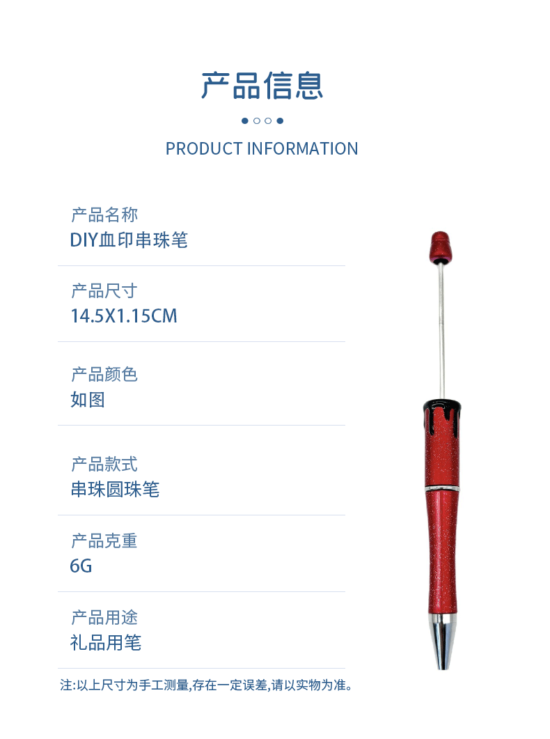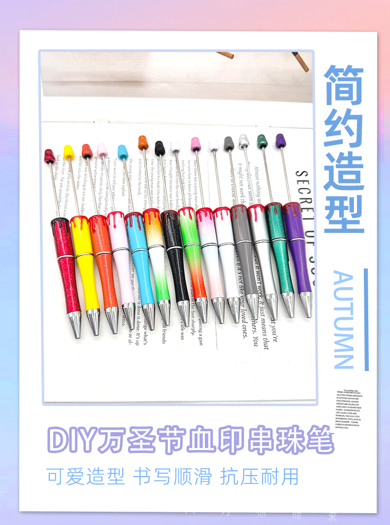 跨境新款血印串珠笔 创意diy串珠万圣节圣诞节礼品萌粒笔现货批发