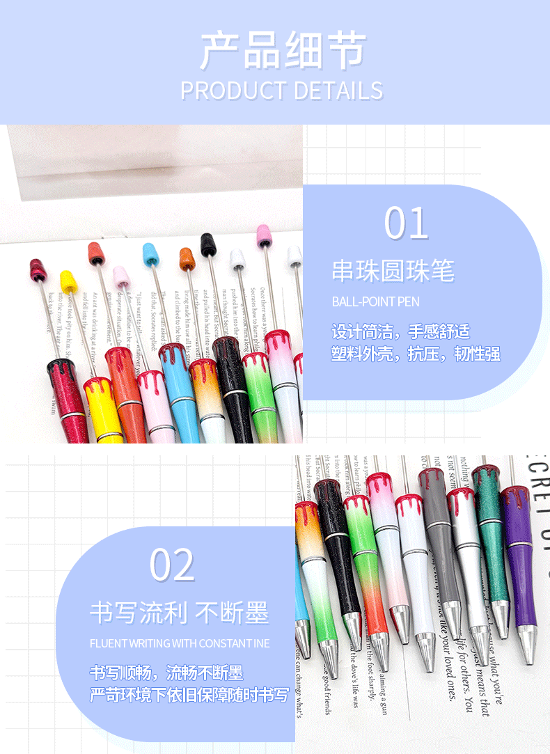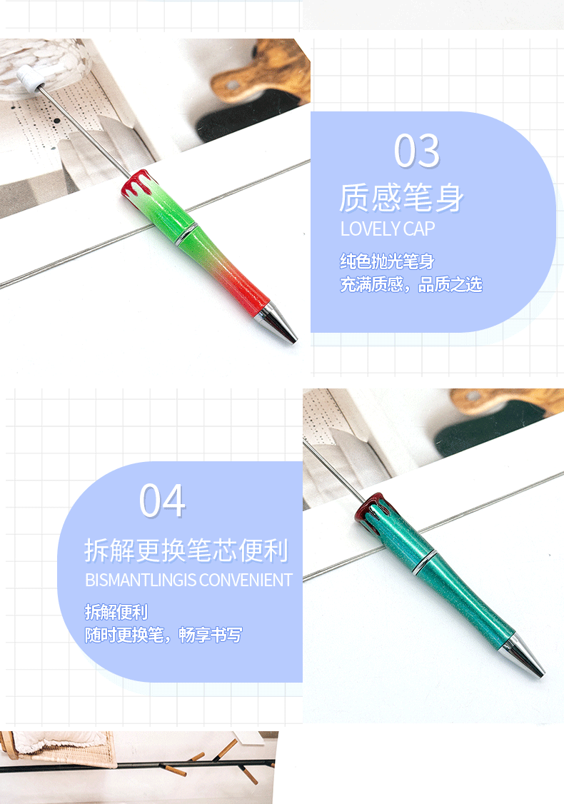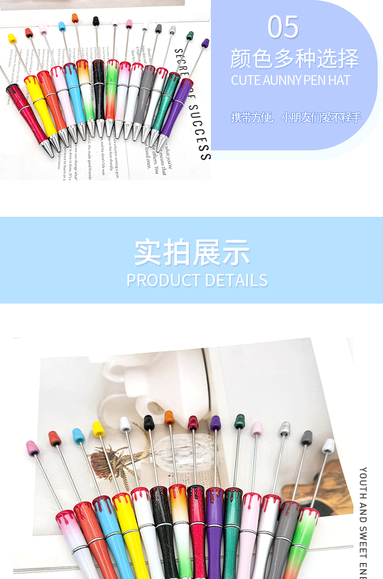 スポット卸売りdiy七彩ビーズペンuv自慢ビーズペンボールペンメッキペン棒グラデーション色ビーズペン