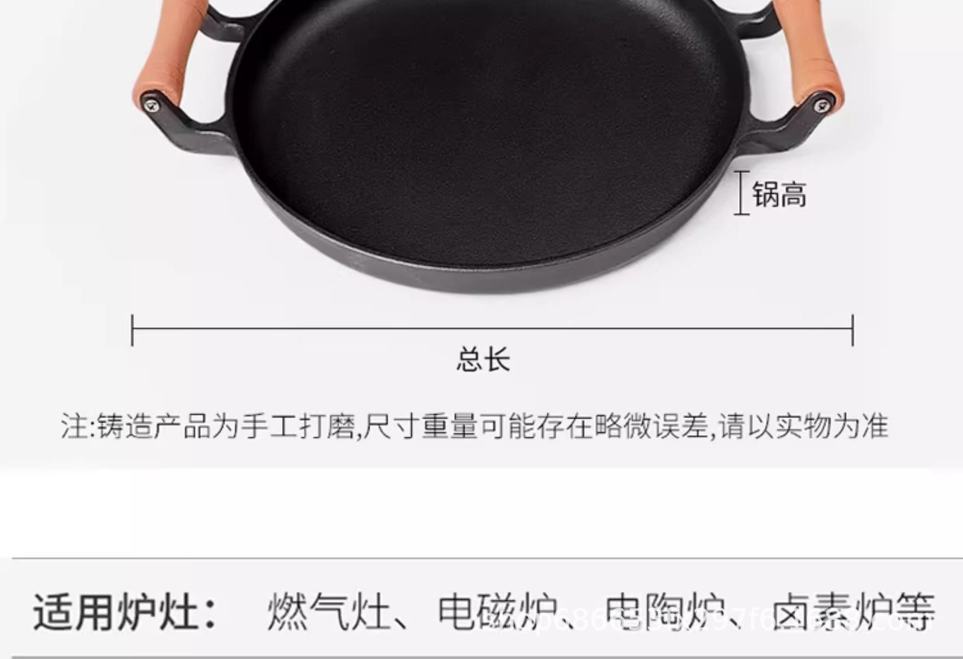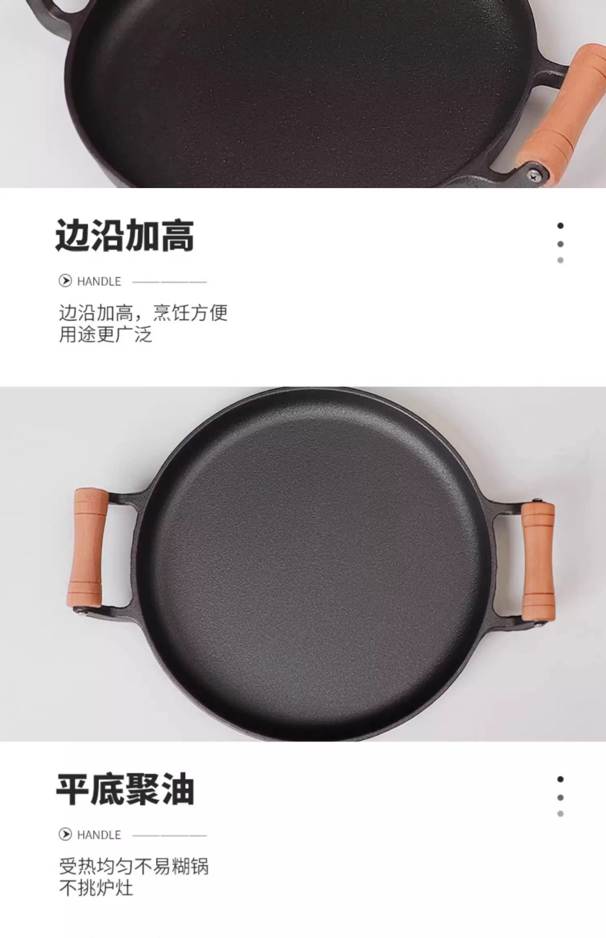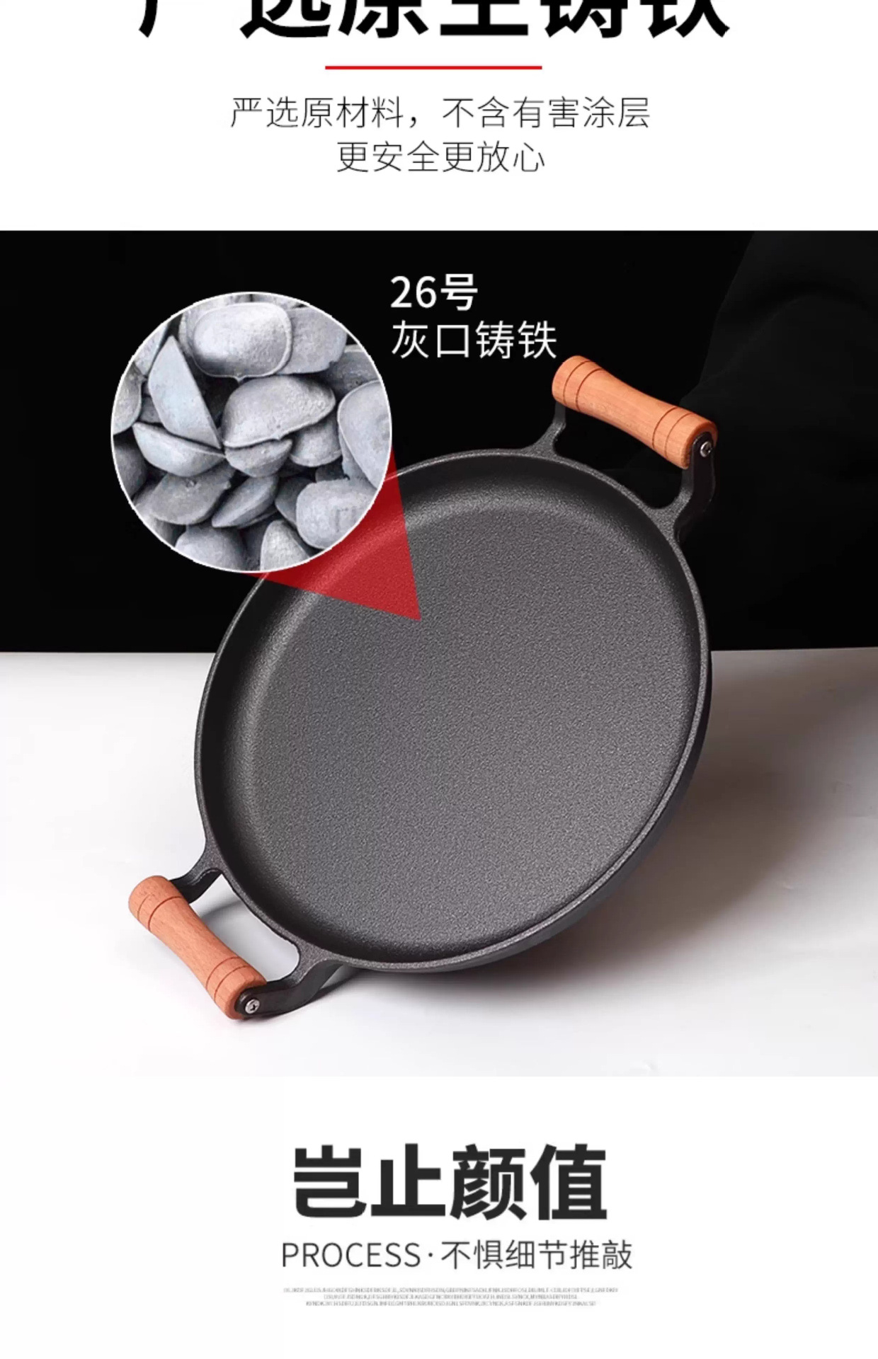 木柄家用煎饼锅铸铁平底锅烙饼鏊子摊煎饼果子工具不粘锅手抓饼锅