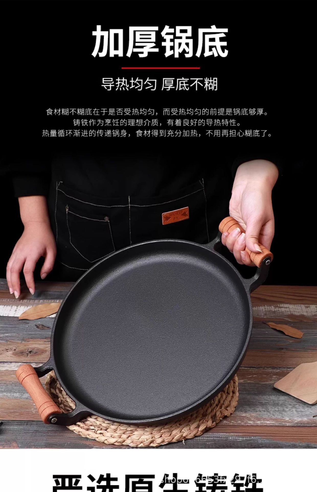 双耳加厚烙饼锅无涂层不粘平底锅生铁鏊子煎饼果子锅饼铛