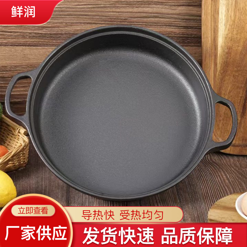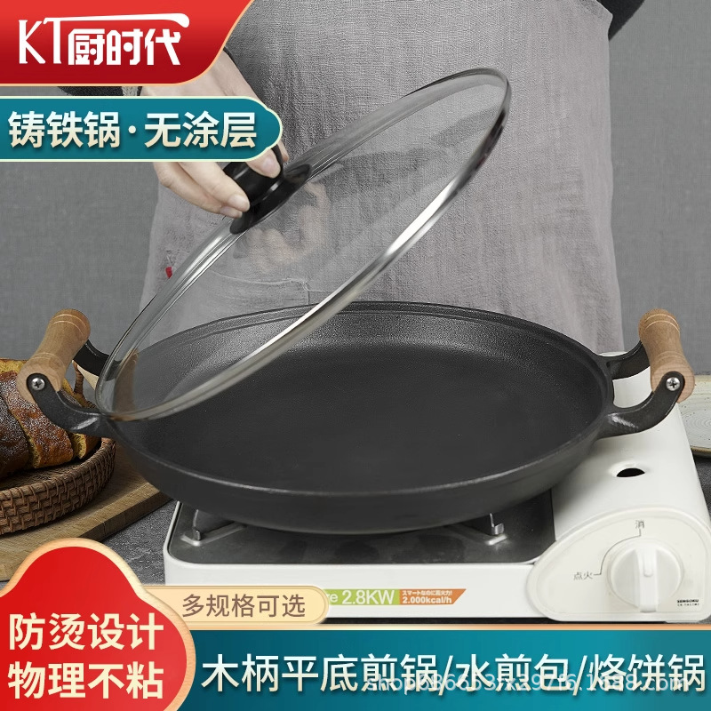 铸铁双耳平底锅批发家用无涂层烙饼水煎包煎锅通用老式生铁不粘锅