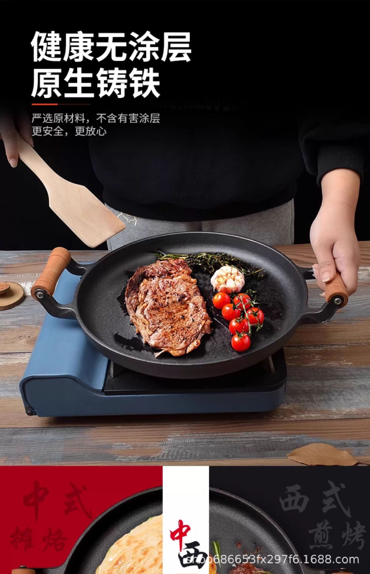 鋳鉄フライパンは家庭用コーティングされていない烙餅鍋の手掴み餅ステーキがくっつかないフライパンのパンケーキフライパンを厚くする