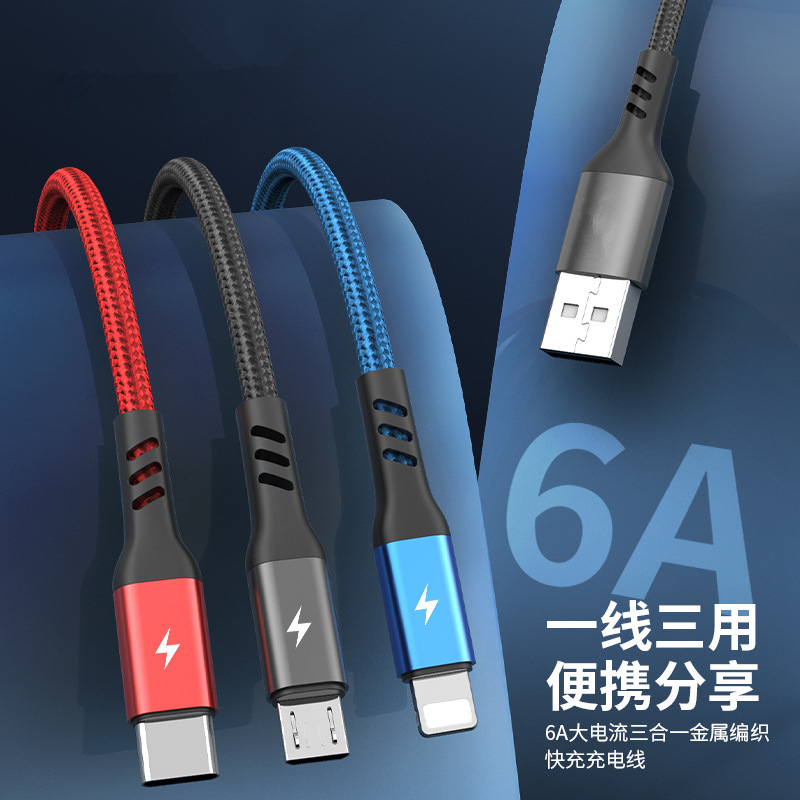 データ線三合一快充一牽引三充電線器車載データ線三頭120W多頭適用リンゴ