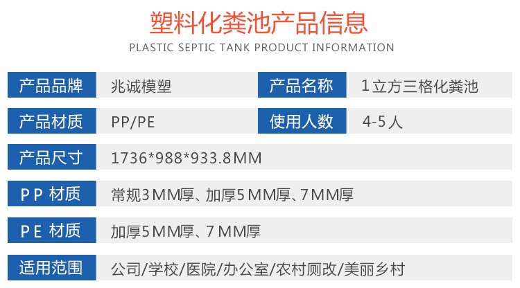 加厚塑料化粪池罐地埋式一体式化粪池农村小户型家用厕所改造化粪