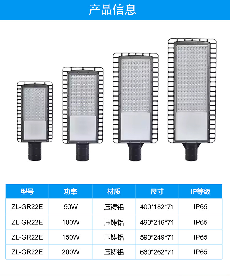 路灯市电跨境led路灯头农村道路照明防水大功率路灯市政工程路灯