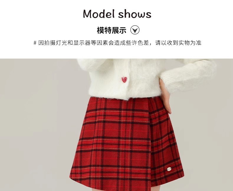 新作春秋冬女児用赤色ウールスカート フレンチスタイルハイウエスト着痩せおしゃれ万能子供用Aラインショートスカート6