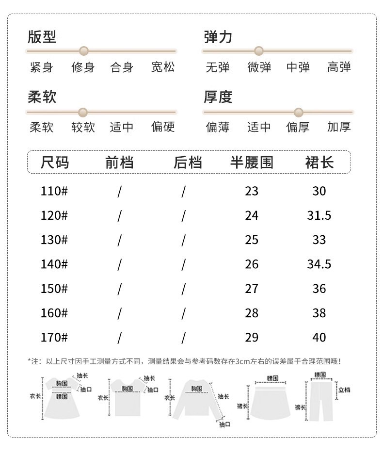 适合身高 110尺码(适合100cm左右穿着),120尺码(适合110cm左右穿着),130尺码(适合120cm左右穿着),140尺码(适合130cm左右穿着),150尺码(适合140cm左右穿着),160尺码(适合150cm左右穿着)