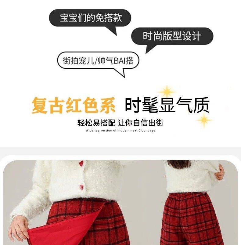 女童毛呢半身裙冬装加厚2025新款超好看红色短裙半裙儿童冬天裙子