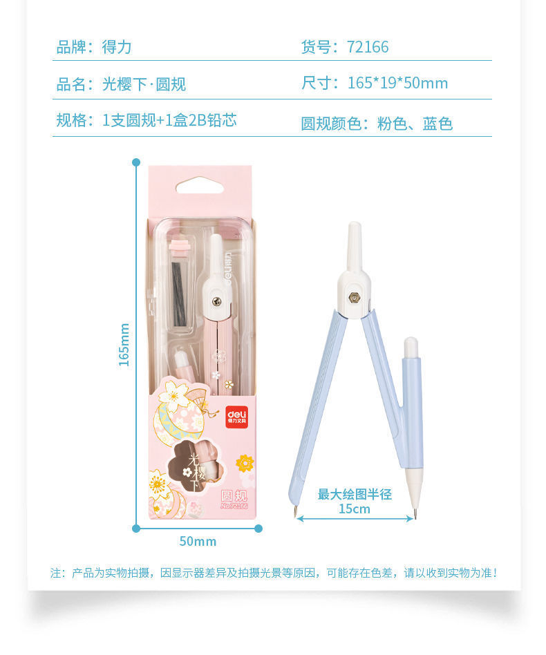 得力桜季王源コンパスセット多機能コンパス中学生試験画セット72166