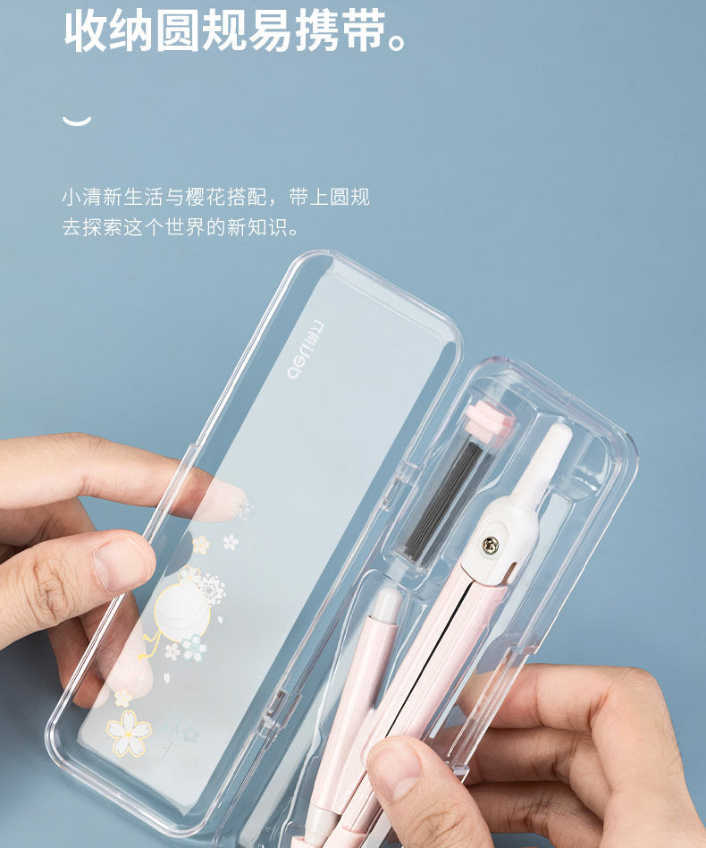 得力樱花季王源圆规套装多功能圆规初中生考试画图组合套装72166