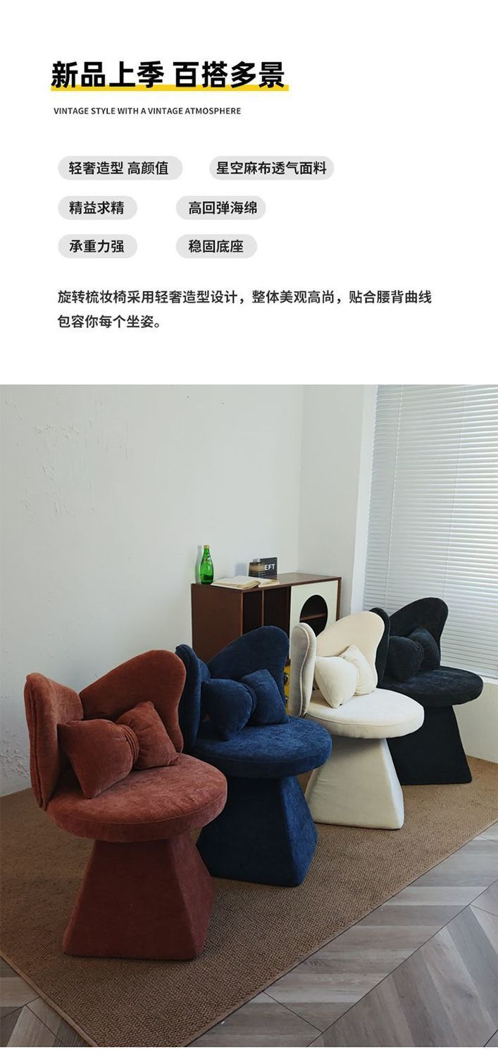 法式轻奢化妆椅简约网红现代蝴蝶结美容椅高级化妆凳美甲椅子工厂