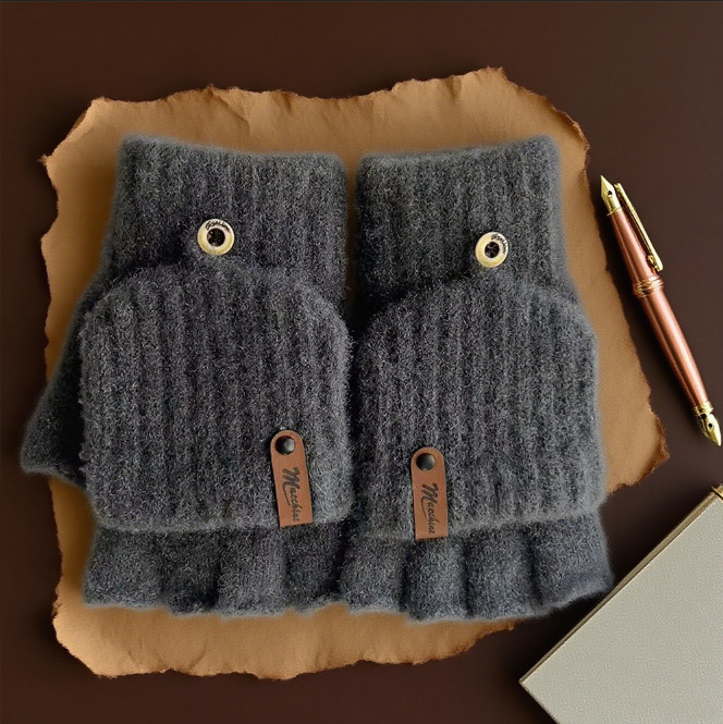 新型の冬用ぬいぐるみ風ハーフフィンガーフリップアップ式保温厚手工場製指なしフェイクミンクニット学生用筆記用手袋(男性用)