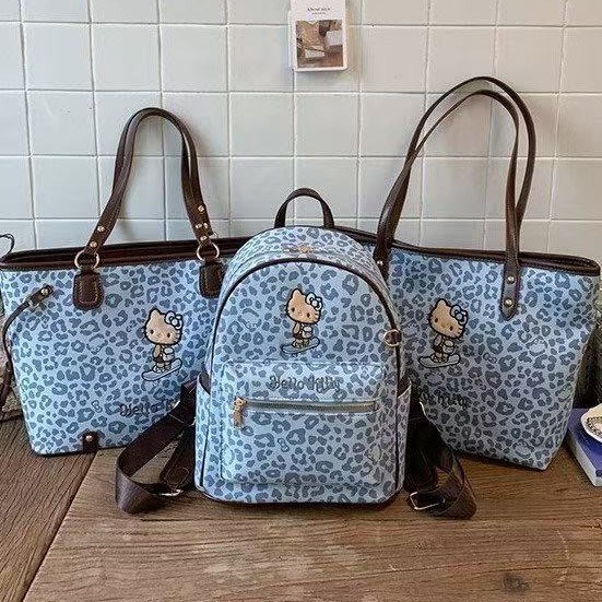 韩版蓝色豹纹凯蒂猫双肩包包女小众设计复古百搭大容量手提单肩包