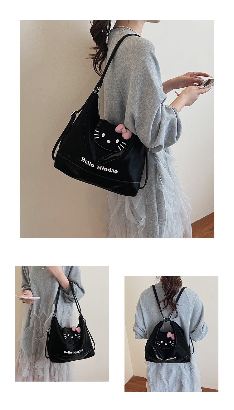 韩版ins可爱凯蒂猫双肩包女PU质感大容量托特包时尚单肩斜挎包包