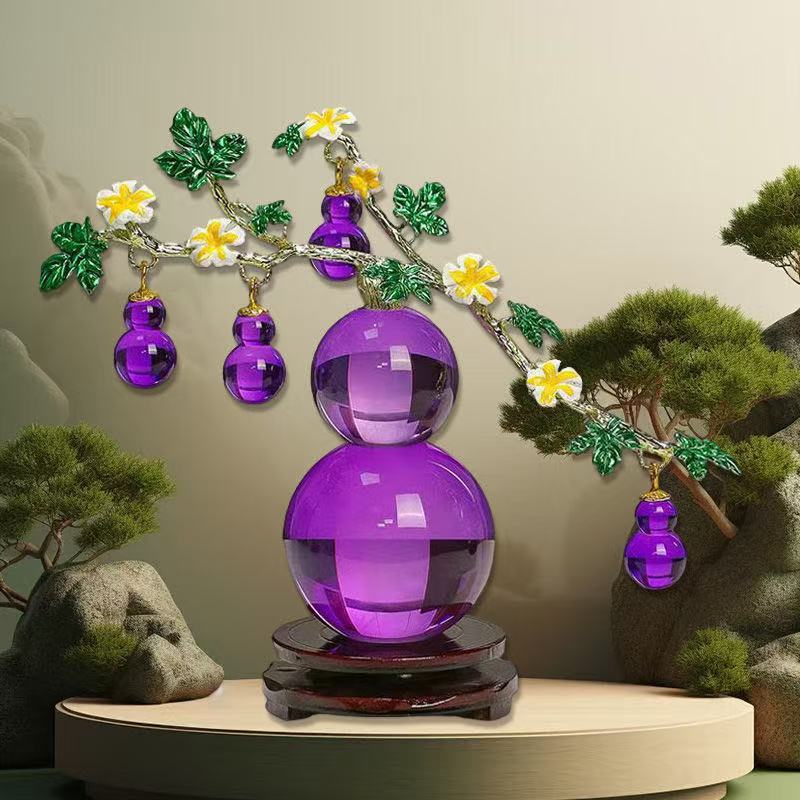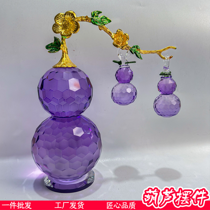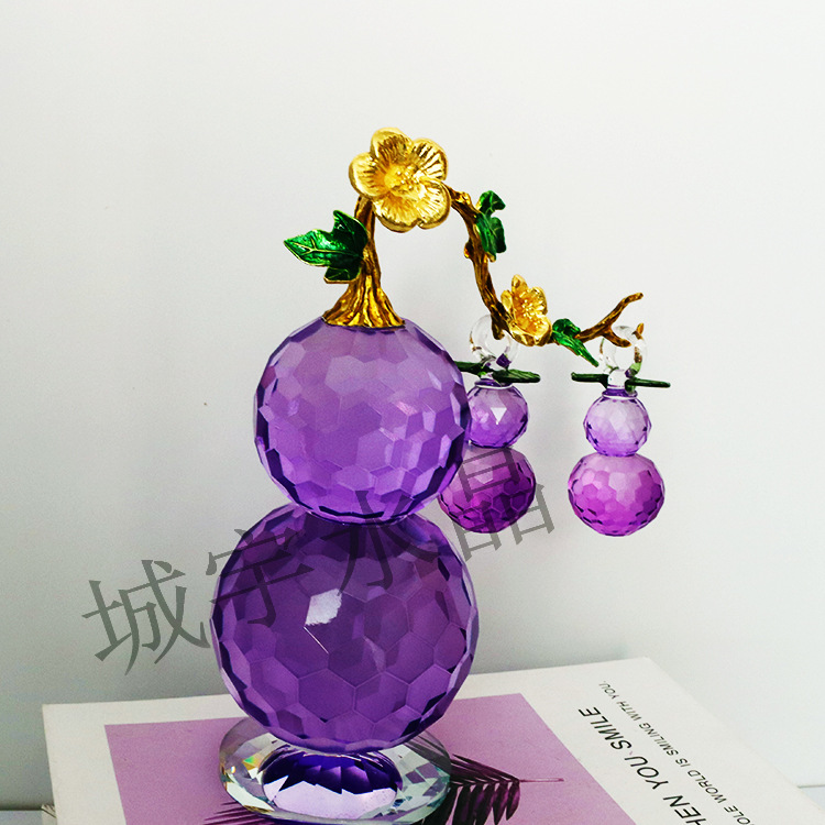 新款梦幻气泡紫色k9水晶葫芦摆件紫气东来客厅电视柜书柜摆件