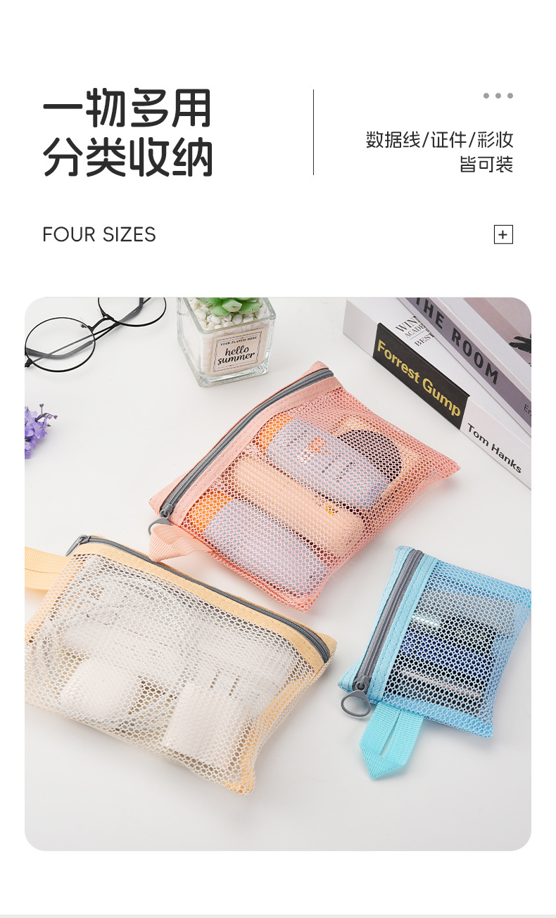 旅行收纳包便携杂物袋随身证件包零钱包透明网格收纳包迷你化妆包