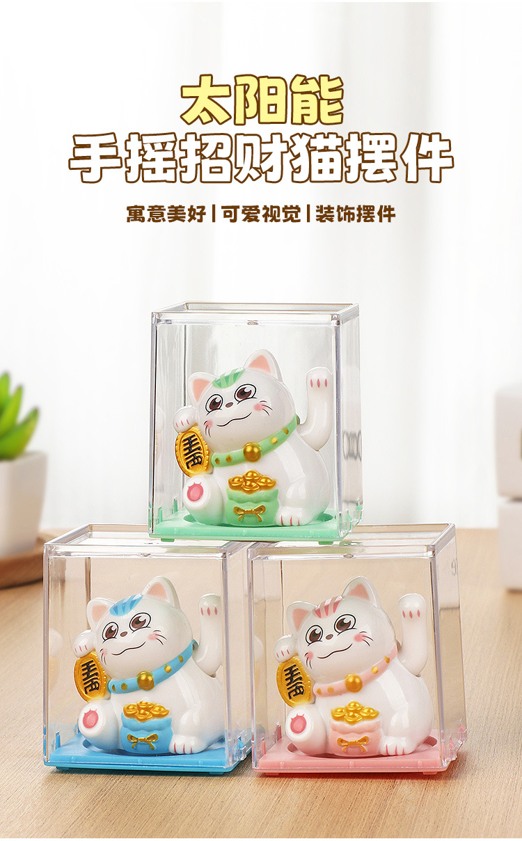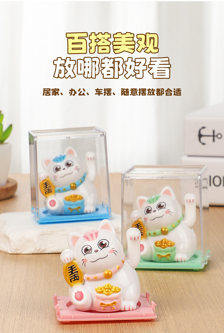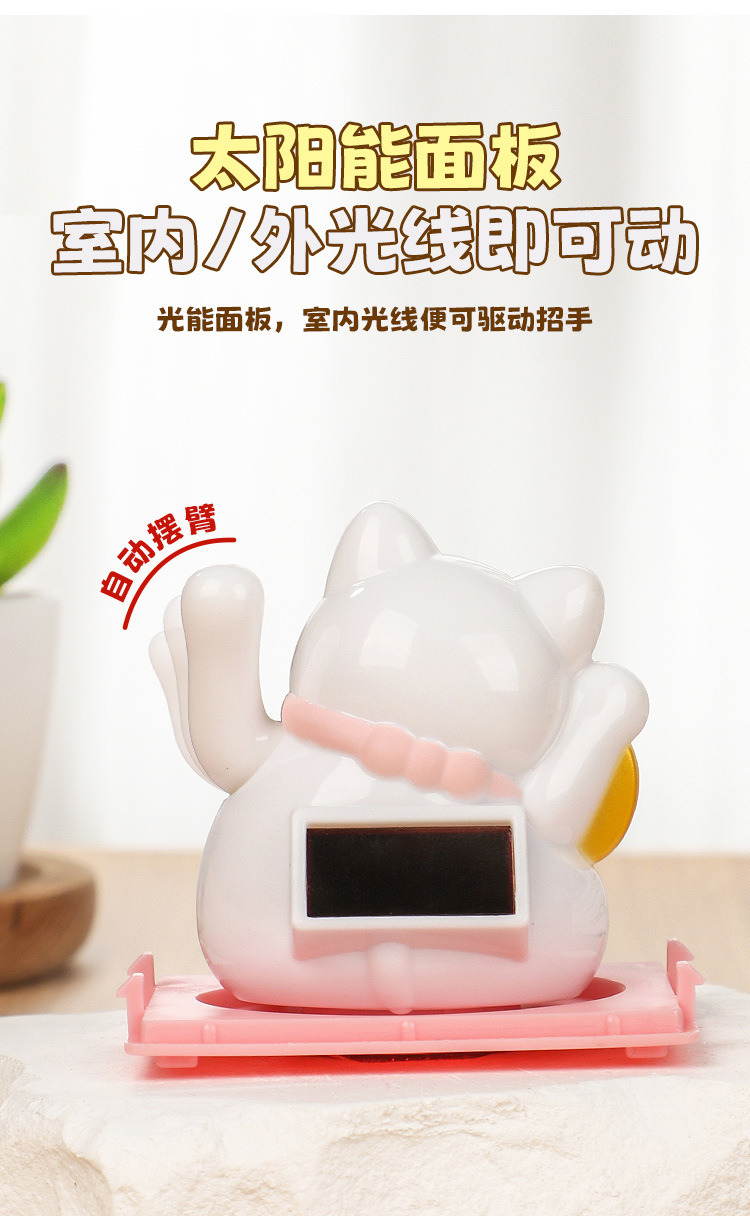 2寸太阳能招财猫自动招手发财猫家居桌面收银前台创意汽车摆件厂