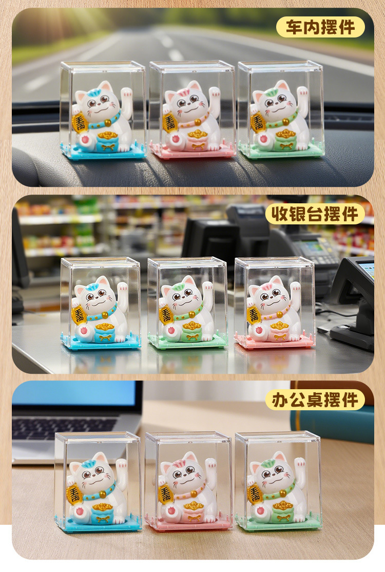 新品2寸招き猫置物ソーラー自動スイングアクセサリーオープン店舗ミニ車載ギフト
