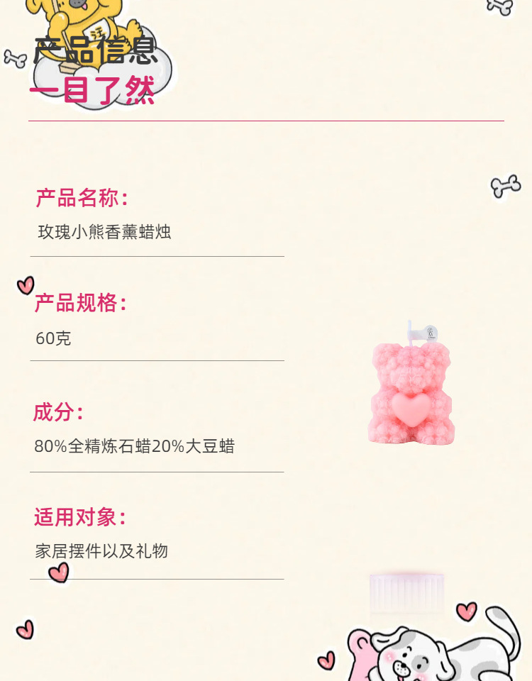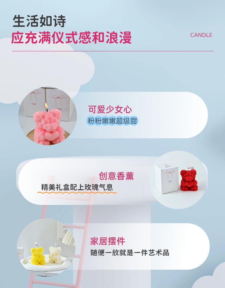 可爱小礼物玫瑰花熊香薰蜡烛闺蜜生日伴手礼情人节七夕节小熊造型