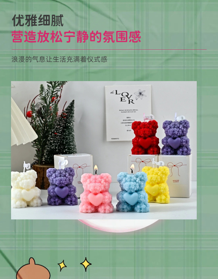 爱心玫瑰熊香薰蜡烛可爱七夕节创意礼物香薰氛围感伴手礼装饰摆件