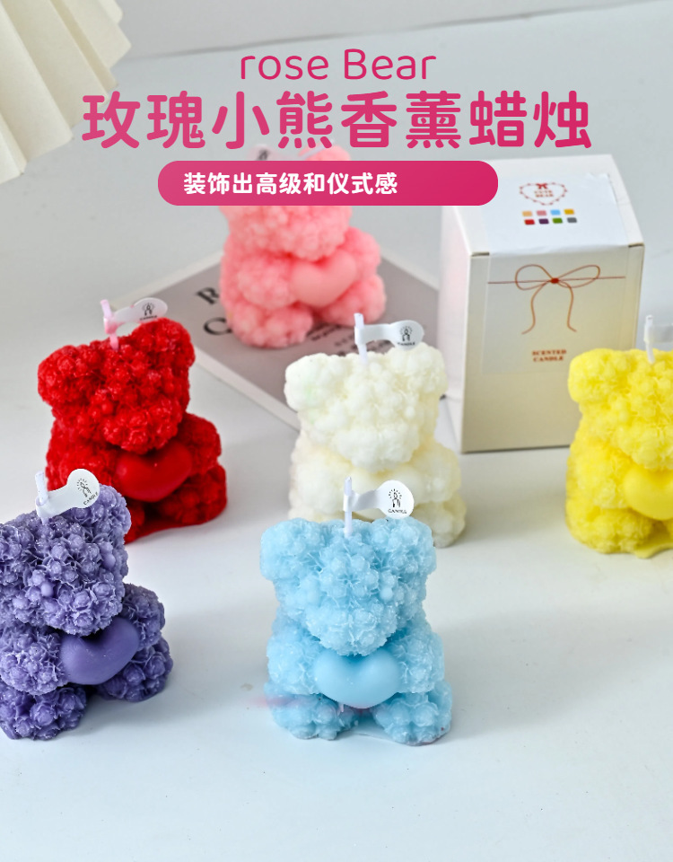 玫瑰熊香薰蜡烛批发家用创意情人节氛围感香氛伴手礼造型蜡烛跨境