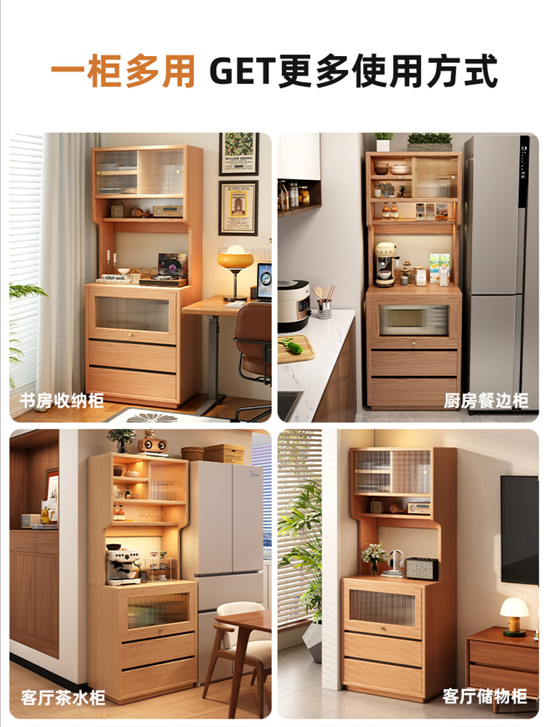 餐边柜靠墙一体储物柜客厅收纳柜新款实木色置物柜咖啡柜茶水柜