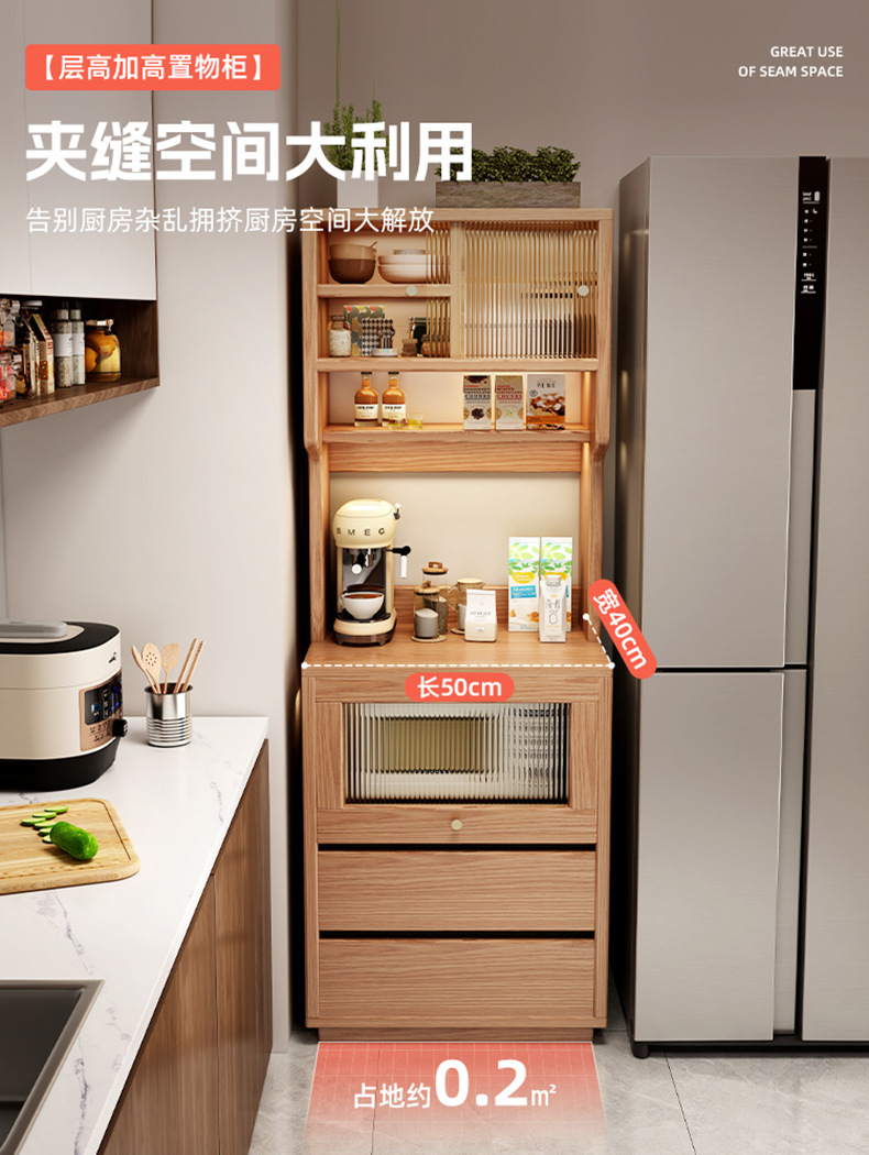 餐边柜家用厨房橱柜靠墙窄边柜中古风夹缝置物柜小型高柜子储物柜