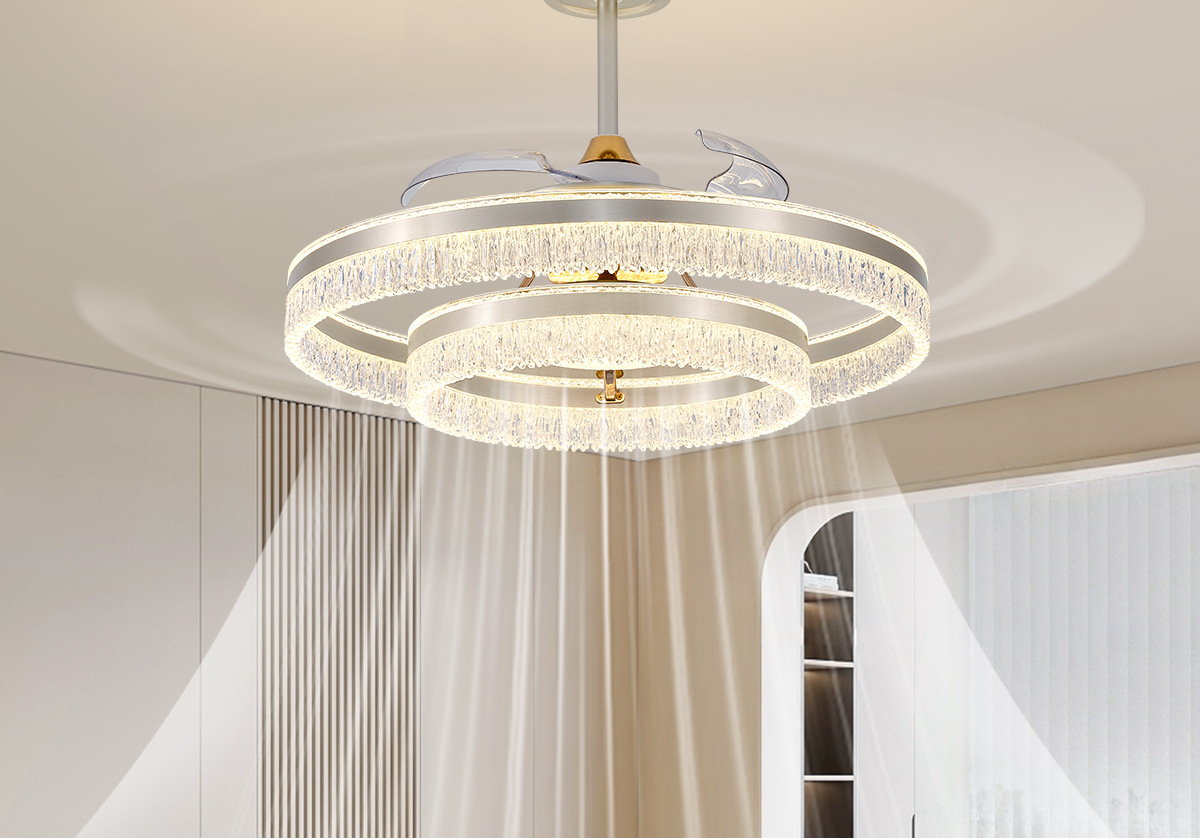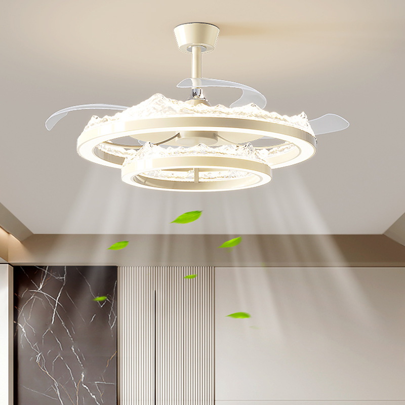 氷ひび吊り扇灯ステルス扇風機灯2025新型軽豪華シャンデリア寝室レストラン家庭用一体扇風機灯
