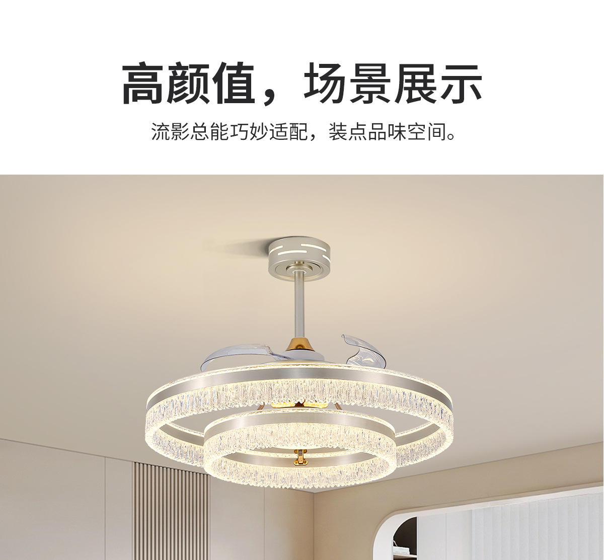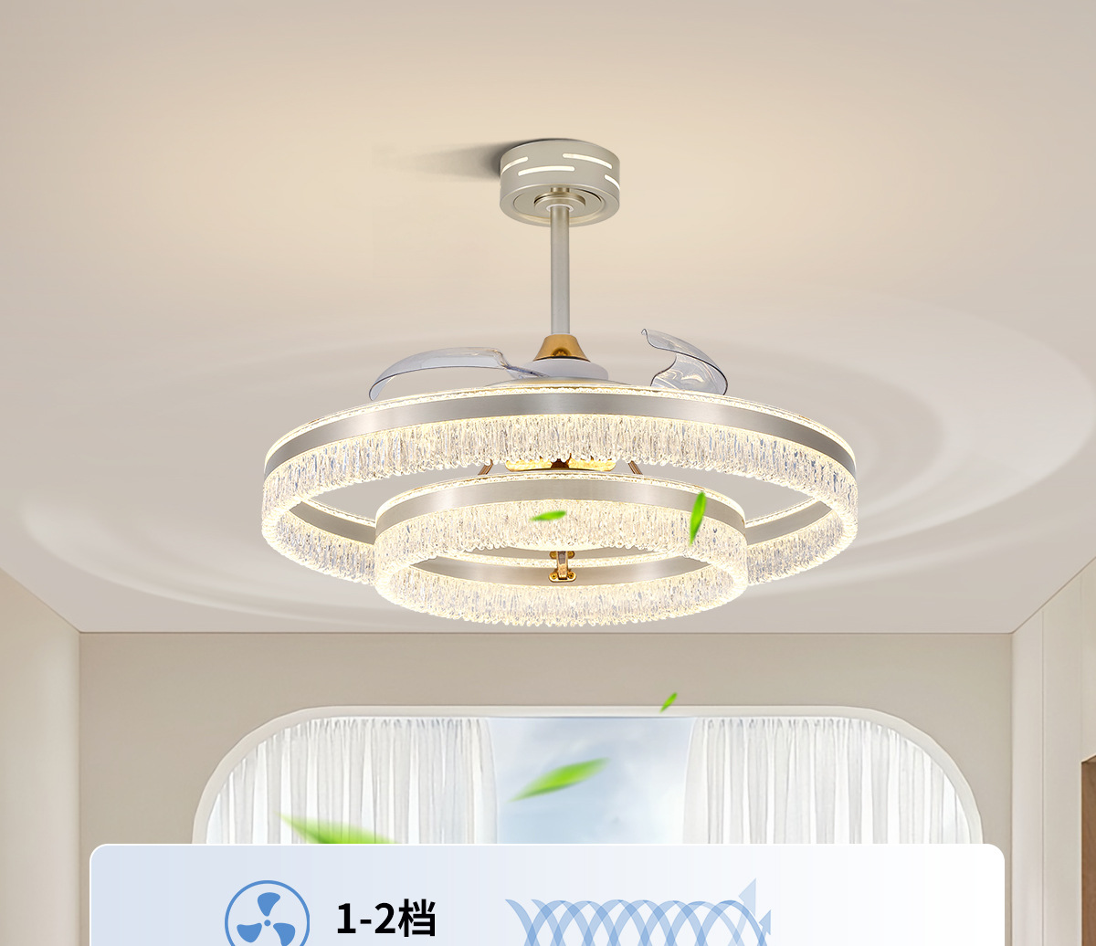 隐形风扇灯2025新款家用一体吸顶灯轻奢高级客厅餐厅冰裂纹风扇灯