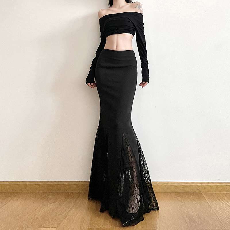 太ったmm 300斤の大きいサイズのレースは黒いスーツの半身のスカートをつなぎ合わせます。