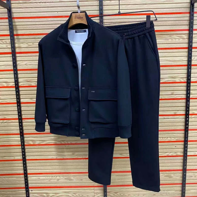 跨境轻奢小香风男士飞行夹克秋冬潮流百搭高级感透气休闲夹克套装