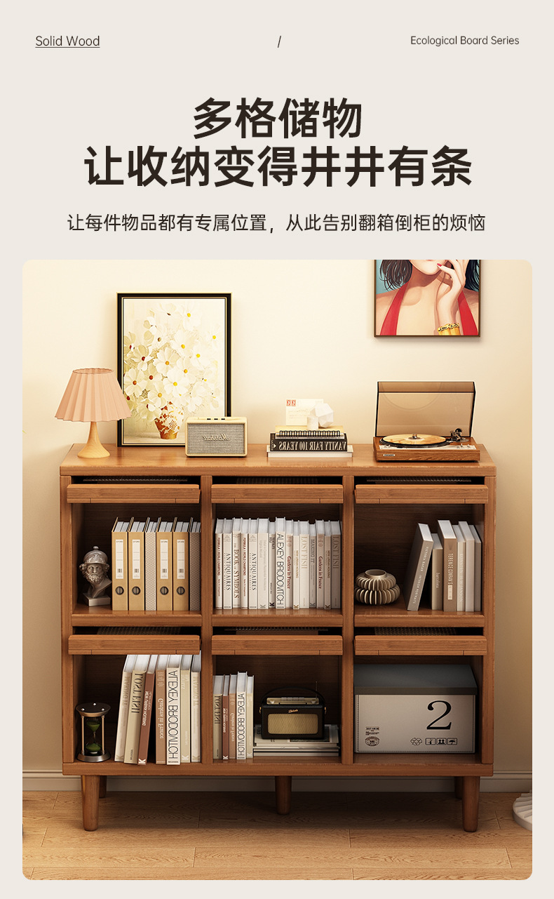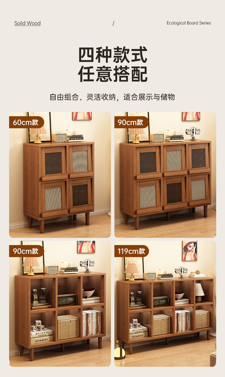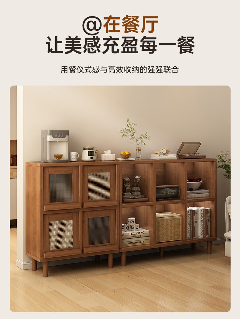 实木书柜收纳格子柜沙发矮柜餐边茶水柜家用防尘储物柜一体置物柜