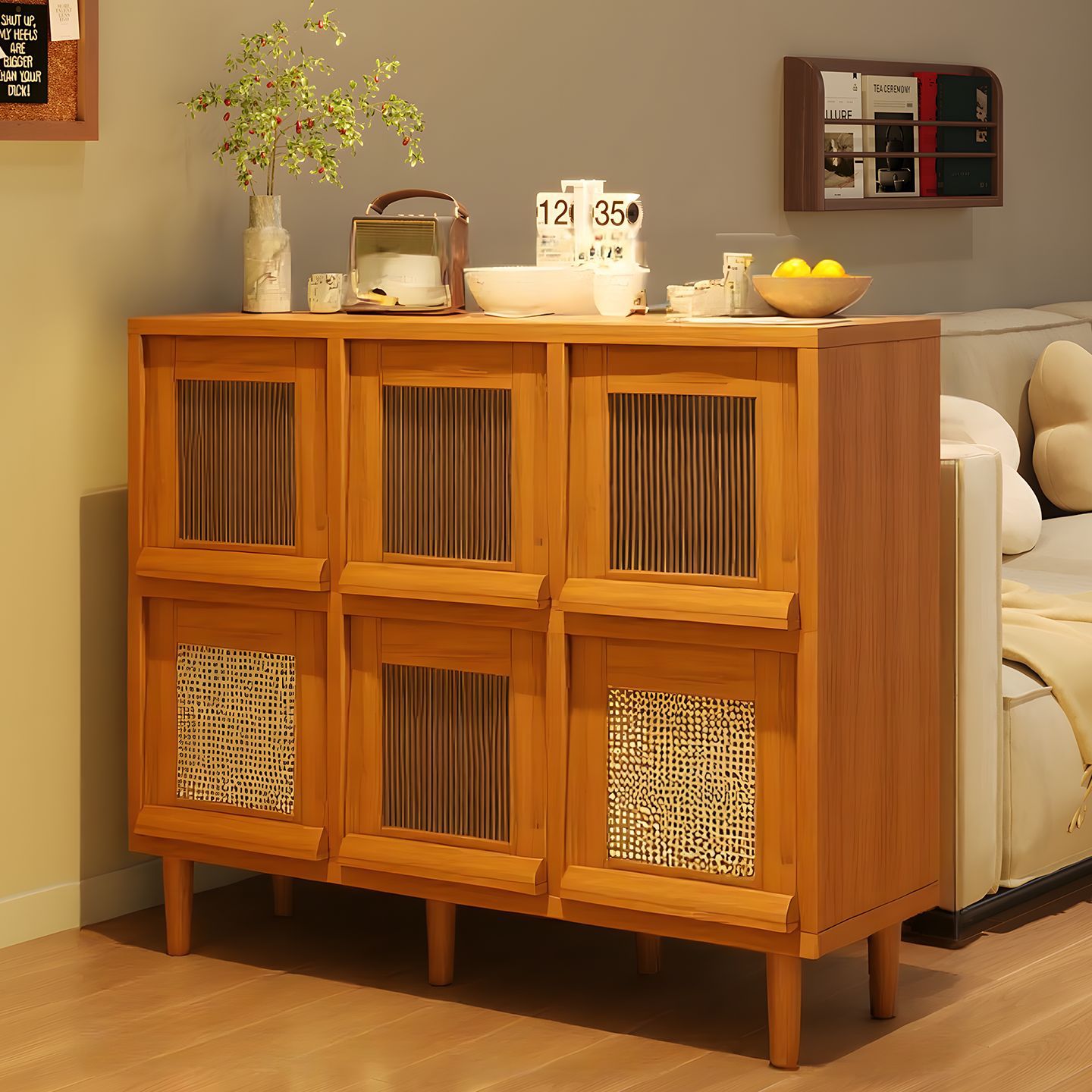 书柜落地靠墙大容量置物柜多层家用储物柜客厅边柜复古藤编收纳柜