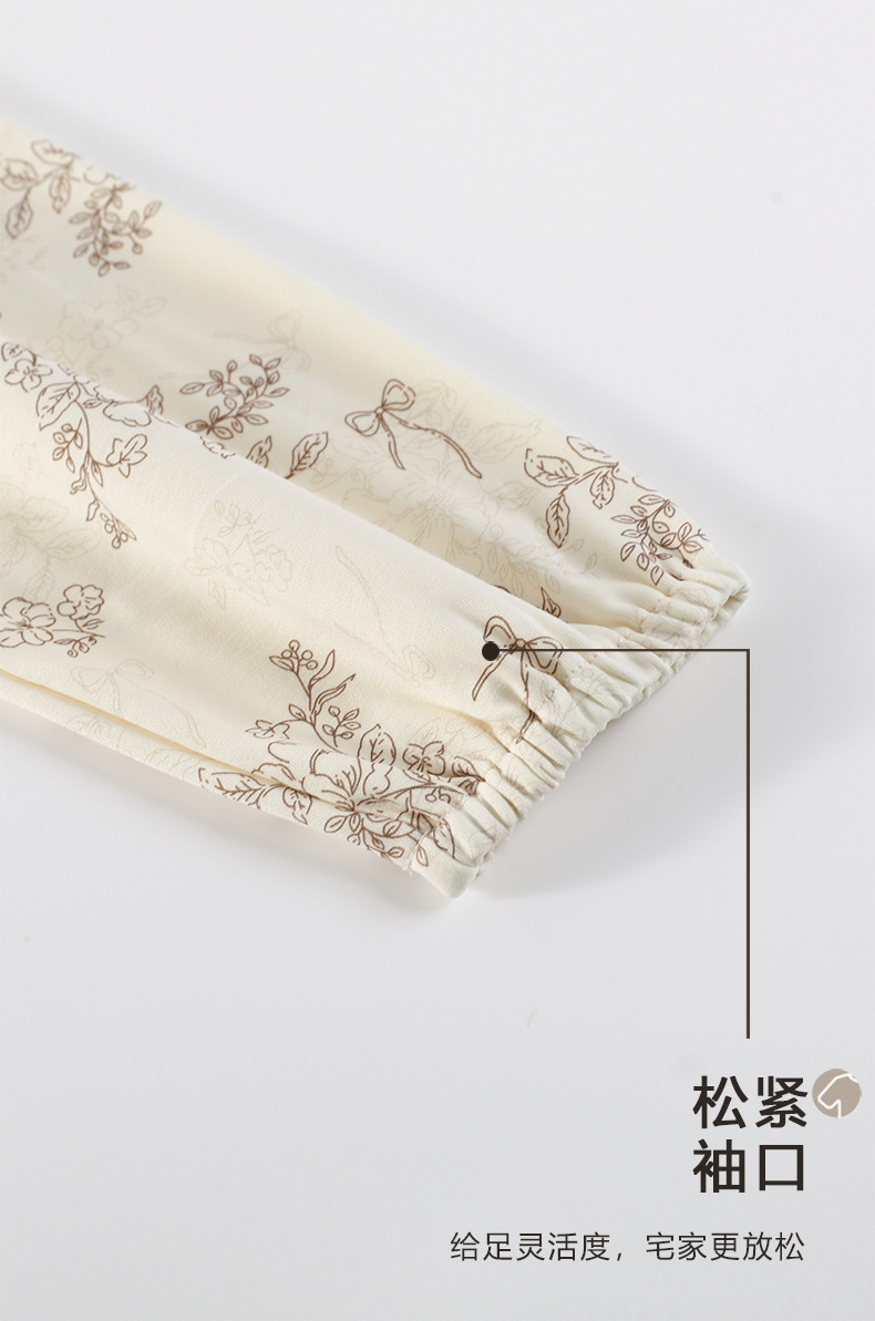 睡衣女春秋季云朵棉长袖圆领开衫卡可外穿家居服束脚长裤新款套装