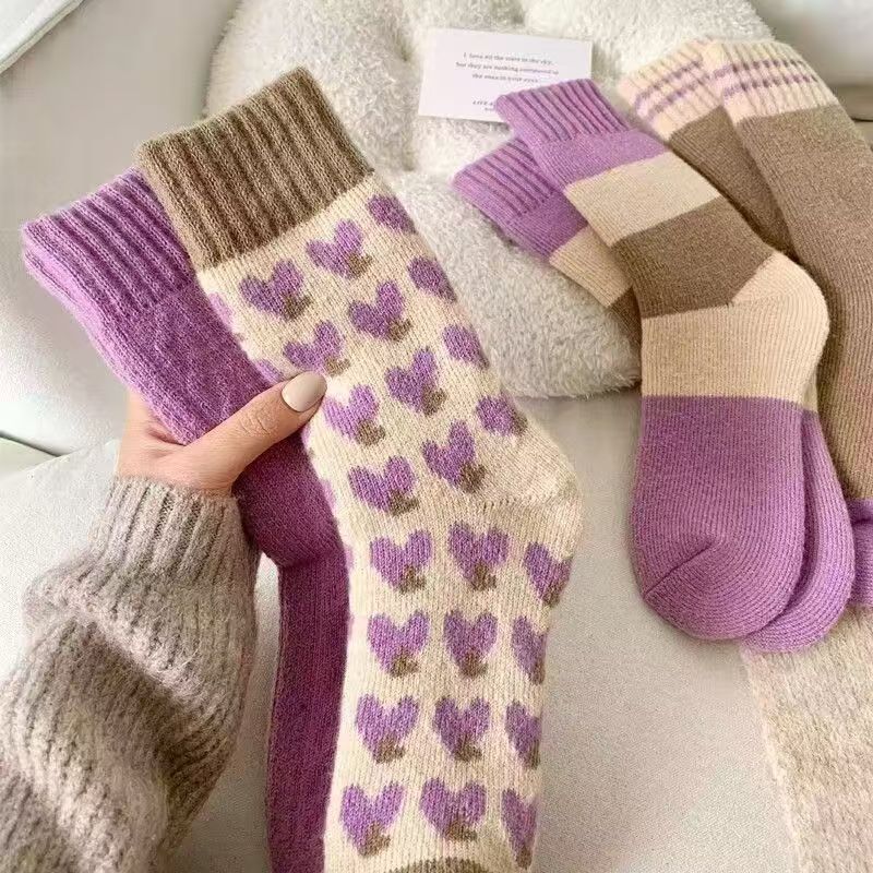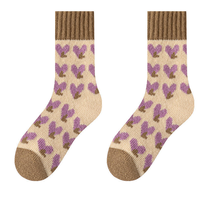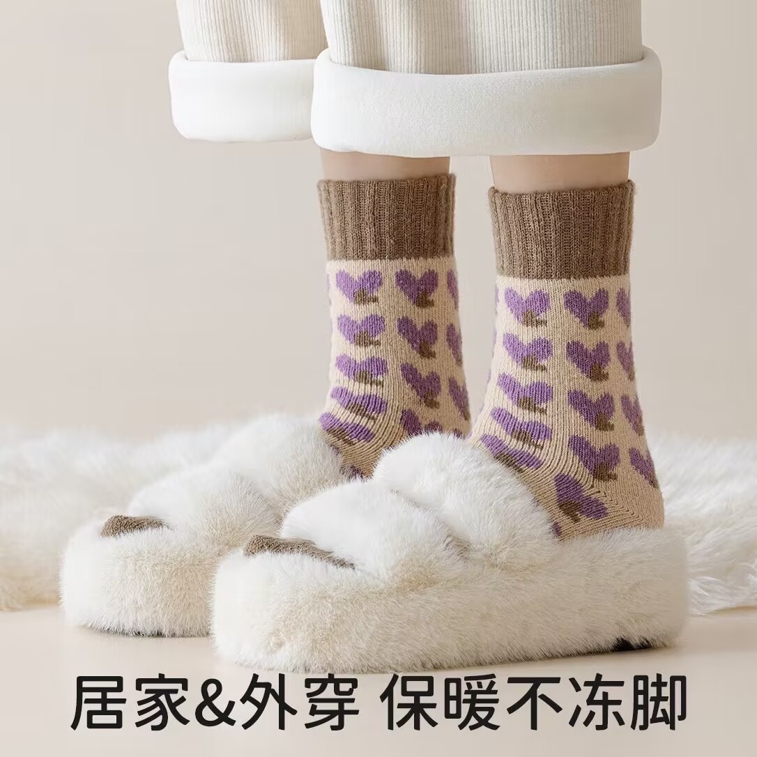 冬季毛圈袜纯色超厚秋冬款毛绒防寒爱心保暖袜加厚款袜子女中筒袜