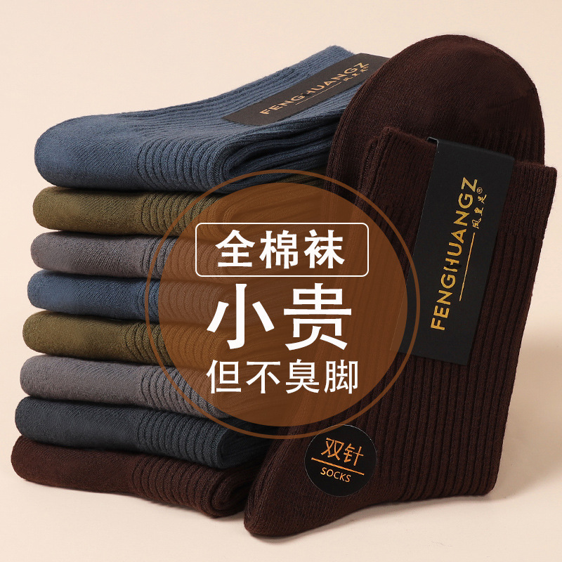 秋冬用純綿厚手ソックス メンズ ビジネスカジュアルソックス 吸汗防臭 ロングソックス 通気性 抗ピリング ミドル丈ソックス