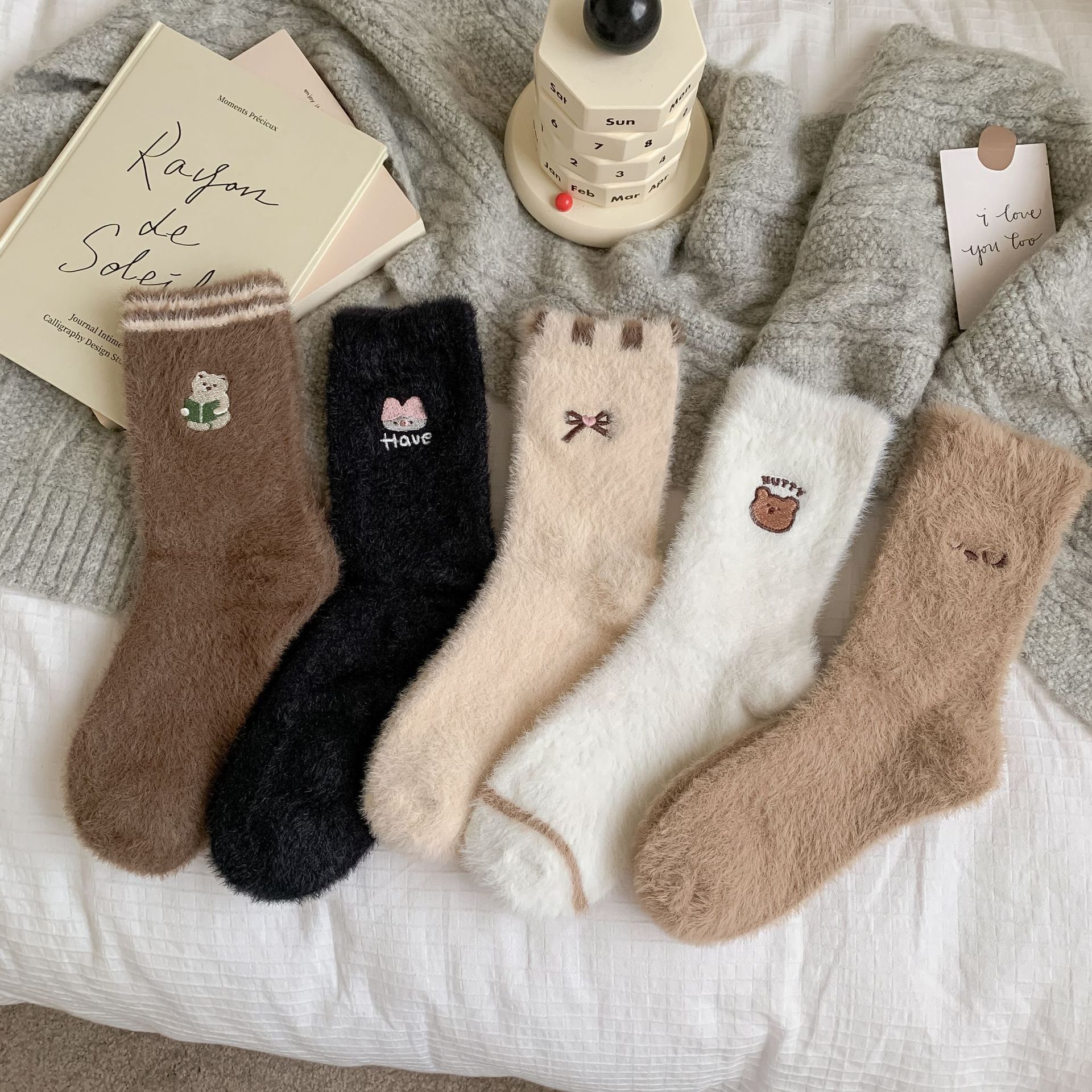 秋冬加绒保暖地板袜水貂绒加厚袜子女卡通可爱长袜居家冬季睡眠袜