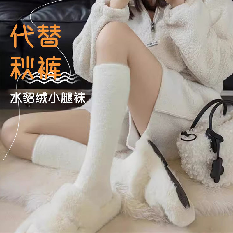 秋冬水貂绒保暖小腿袜加厚加绒睡眠袜冬季袜子女居家百搭堆堆袜