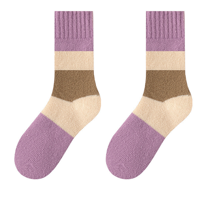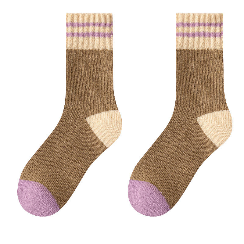 秋冬加绒地板袜保暖加厚羊毛袜美拉德毛圈中筒袜防臭透气袜子女