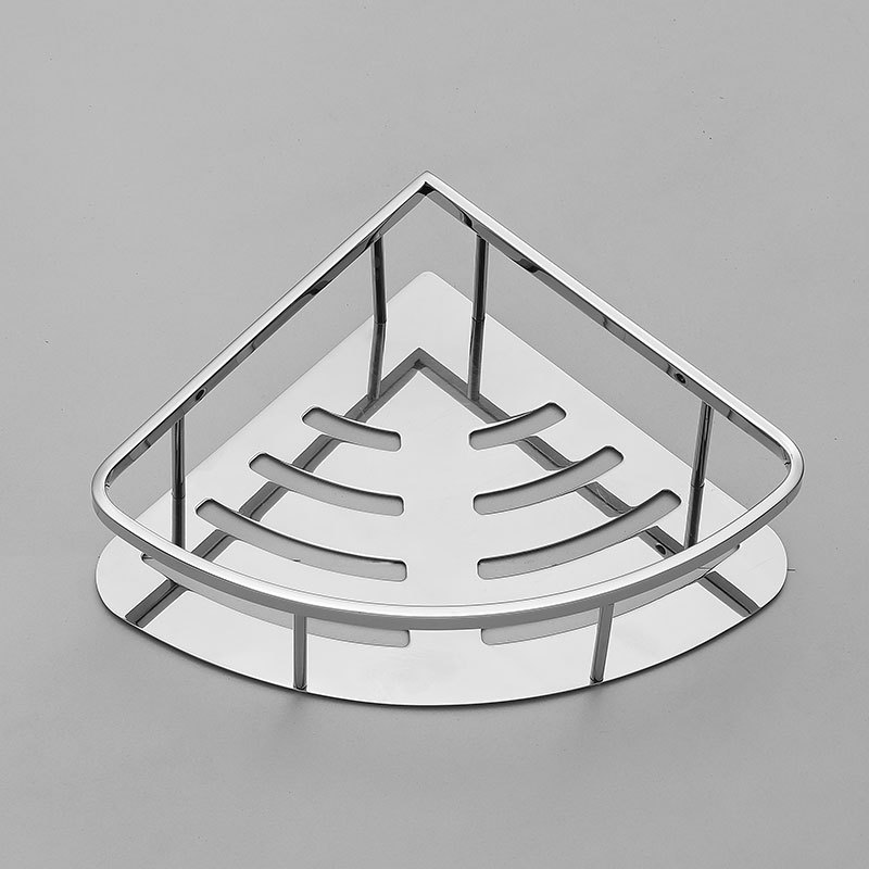 304ステンレスの扇風機型のコーナーフレームのトイレの三角の物置棚の単層の台所の浴室の足の棚は高くなります。