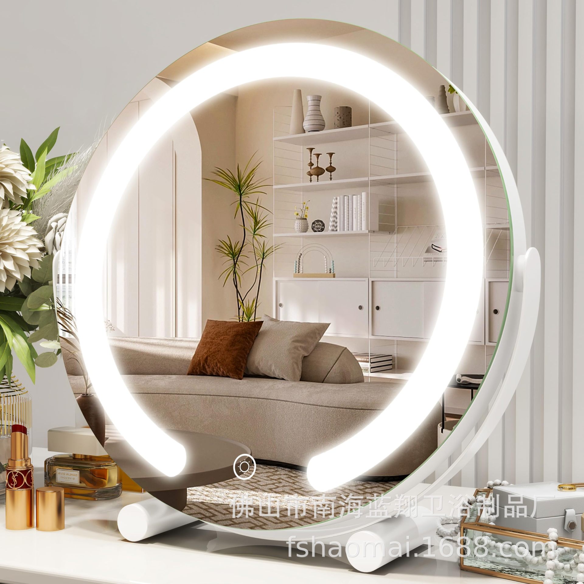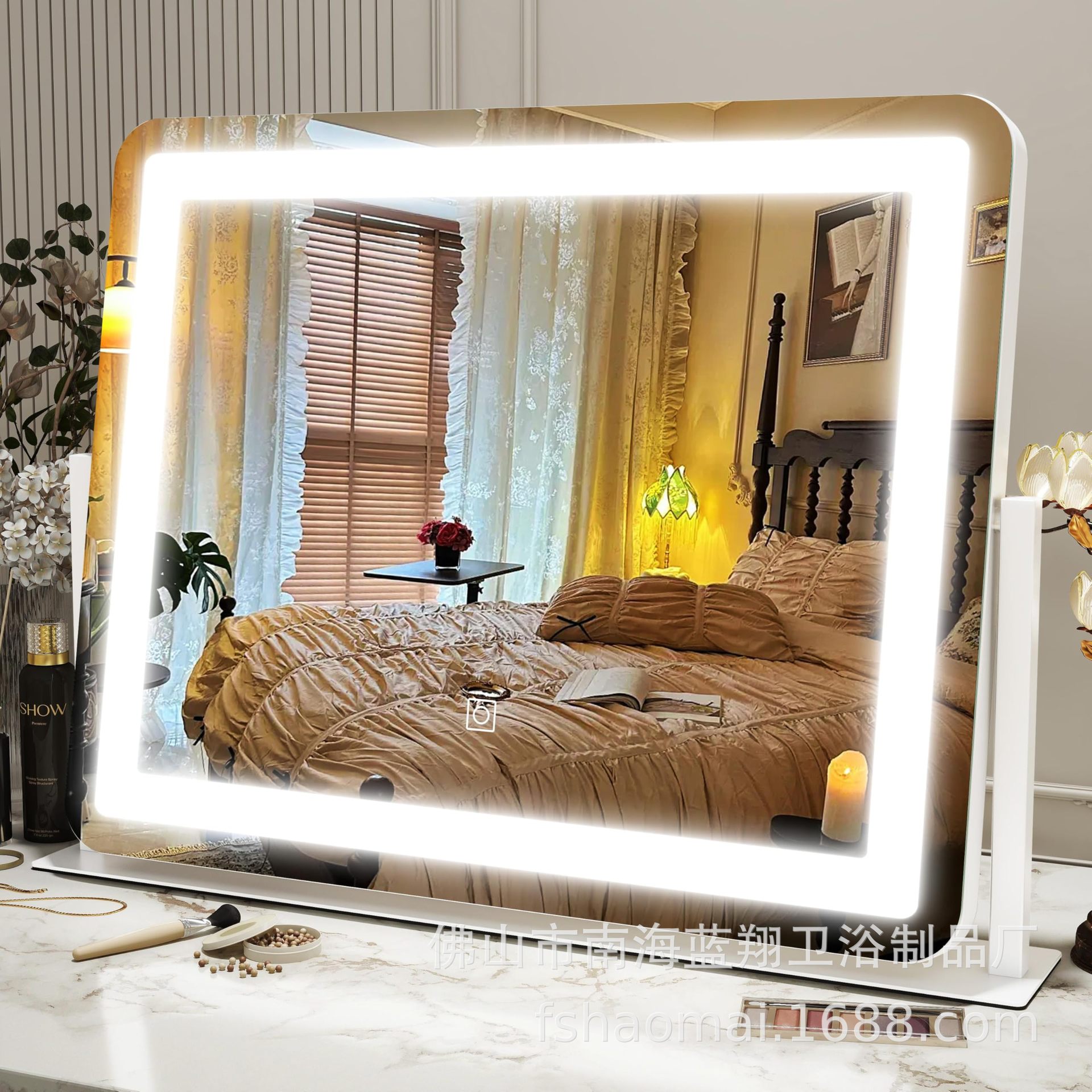 LEDライト付き大型卓上化粧鏡、軽量高級寝室用補光化粧鏡、スマート化粧鏡