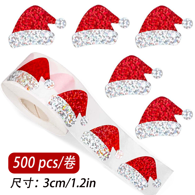 跨境圣诞帽贴纸卷装500贴圣诞节日糖果礼物贴纸装饰不干胶封口贴