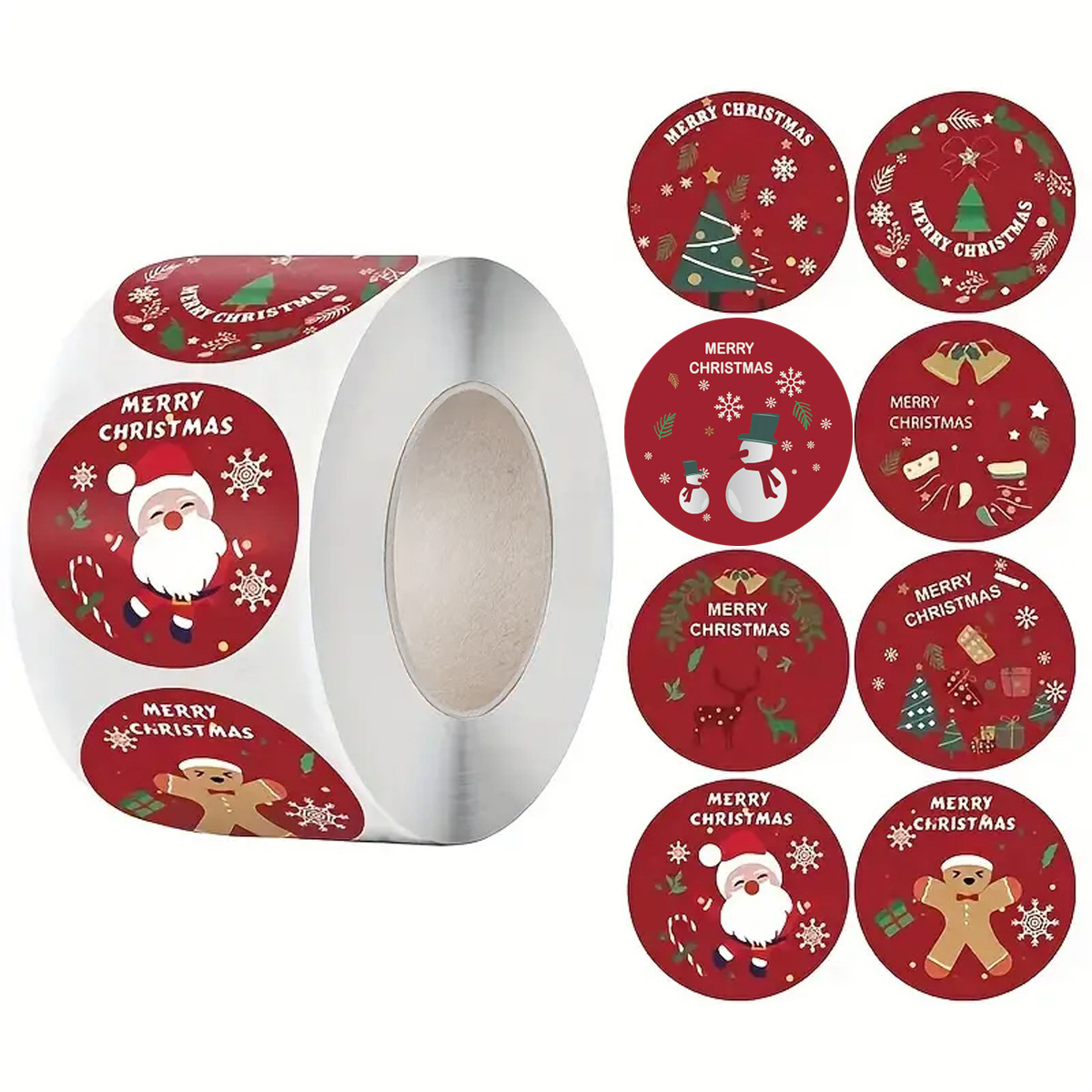 跨境圣诞贴纸卷装500贴圆形礼物装饰封口贴不干胶包装圆贴标签纸