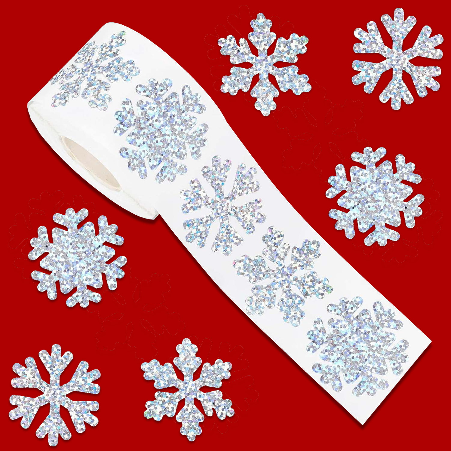 圣诞雪花贴纸卷装自粘不干胶礼品包装圆点贴节日装饰贴纸跨境热销