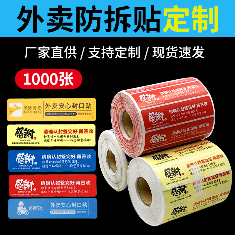 テイクアウトシールステッカー、粘着ラベルシート、テイクアウト弁当箱包装改ざん防止ステッカー、サンキューロゴシール