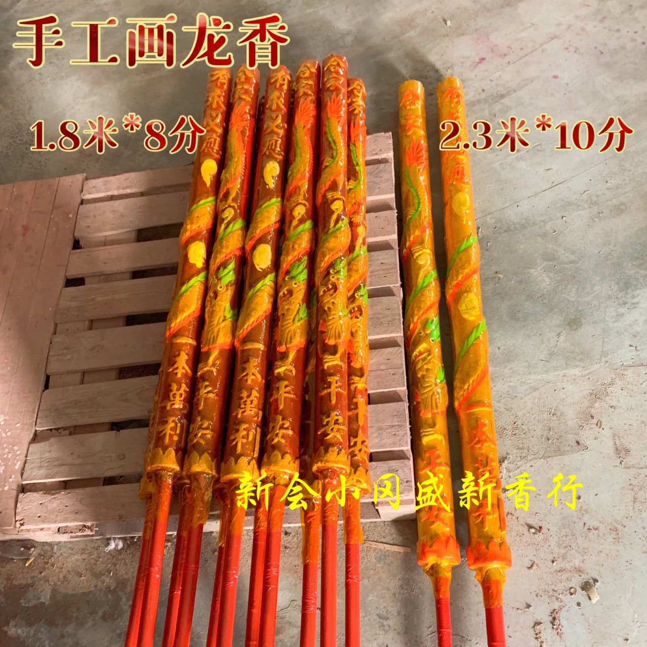 小冈佛香批发1.8米8分2.3米10分凸龙香手工画龙香棒香高香大香