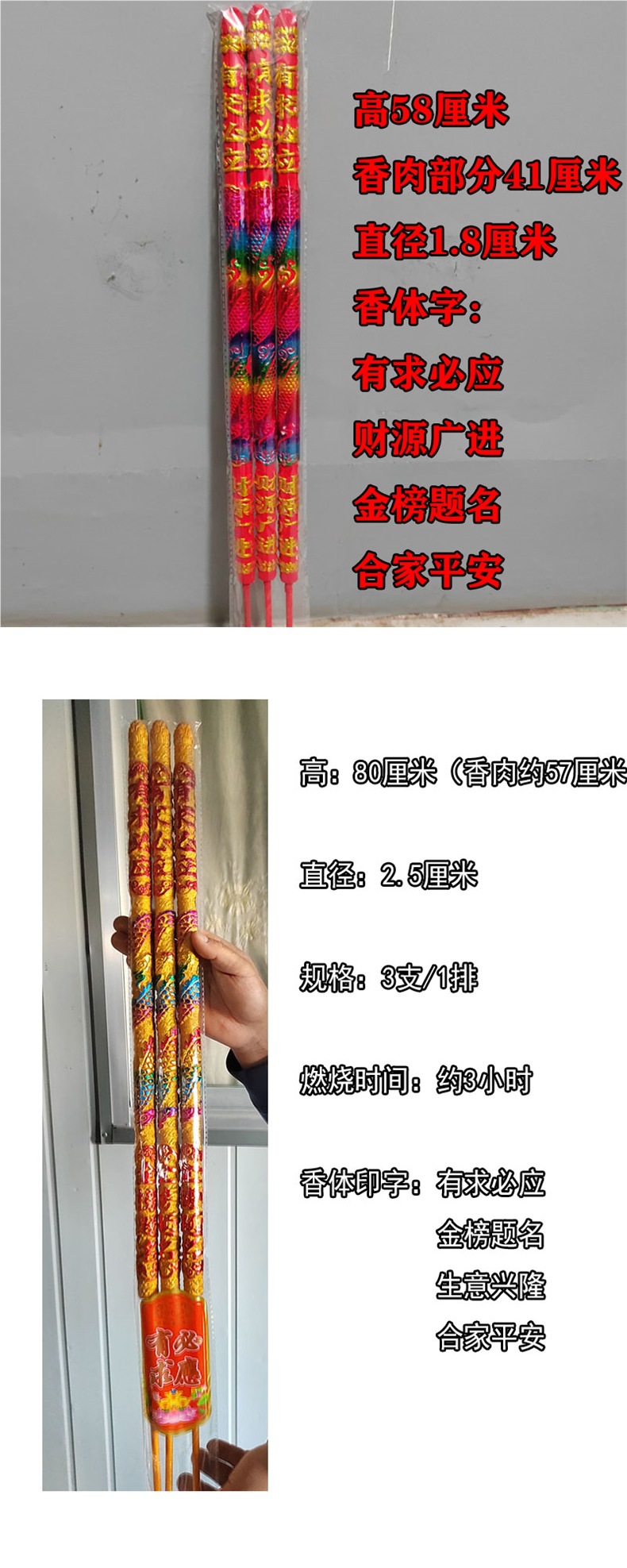 メーカー直販1.2/1.5/1.8メートル三本の高香棒香箔押し香顕字香大香排香寺院仏
