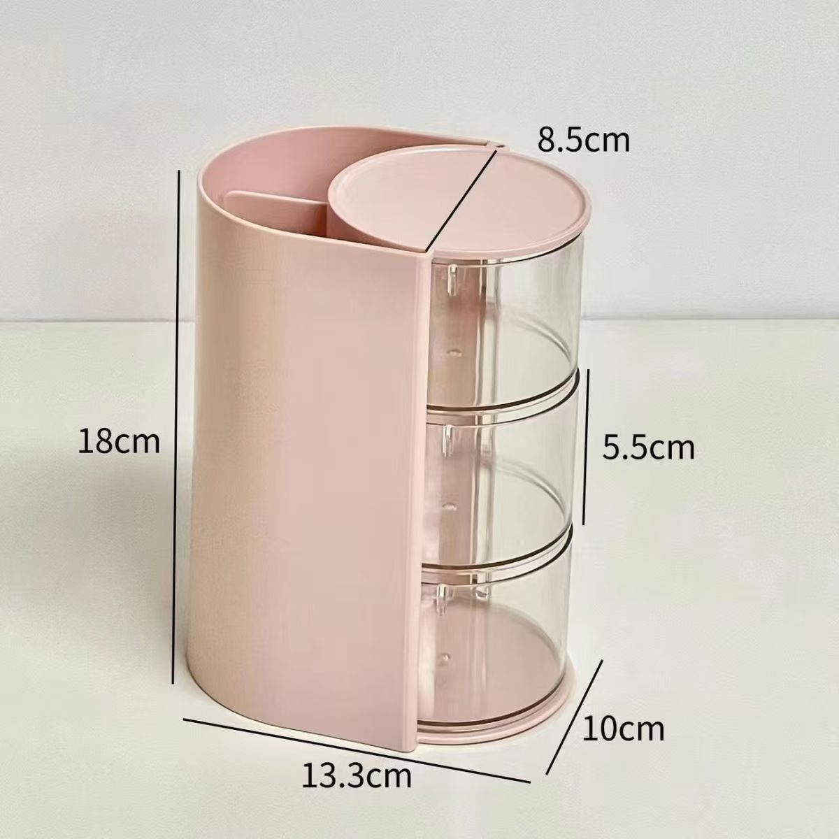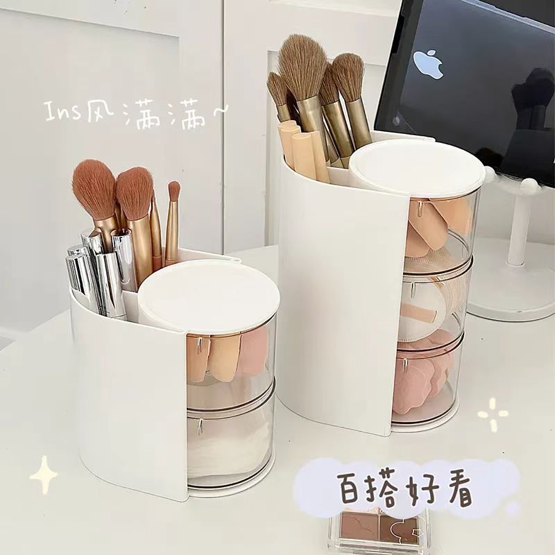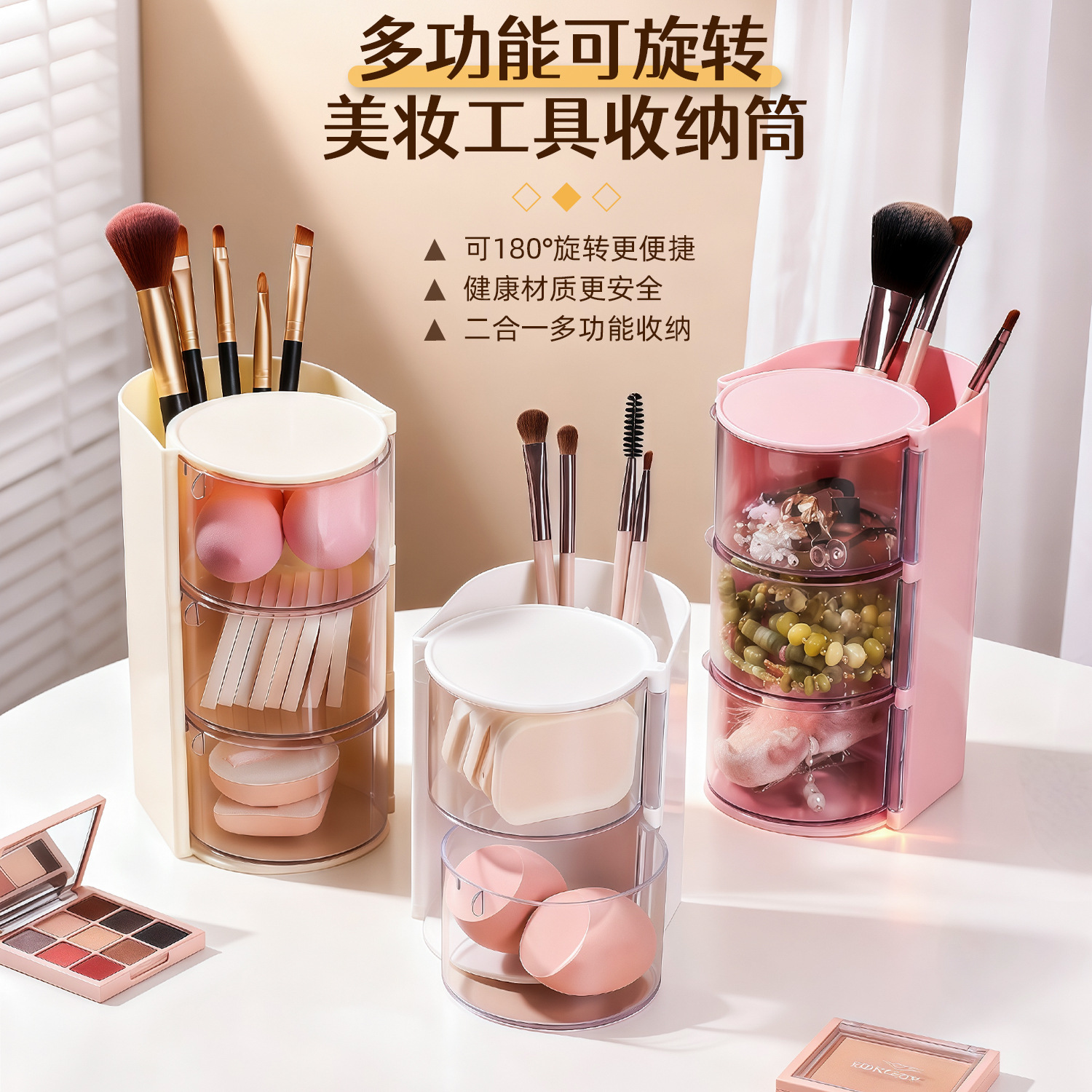 化妆品收纳盒护肤品旋转防尘化妆棉梳妆台桌面美妆蛋化妆刷收纳筒